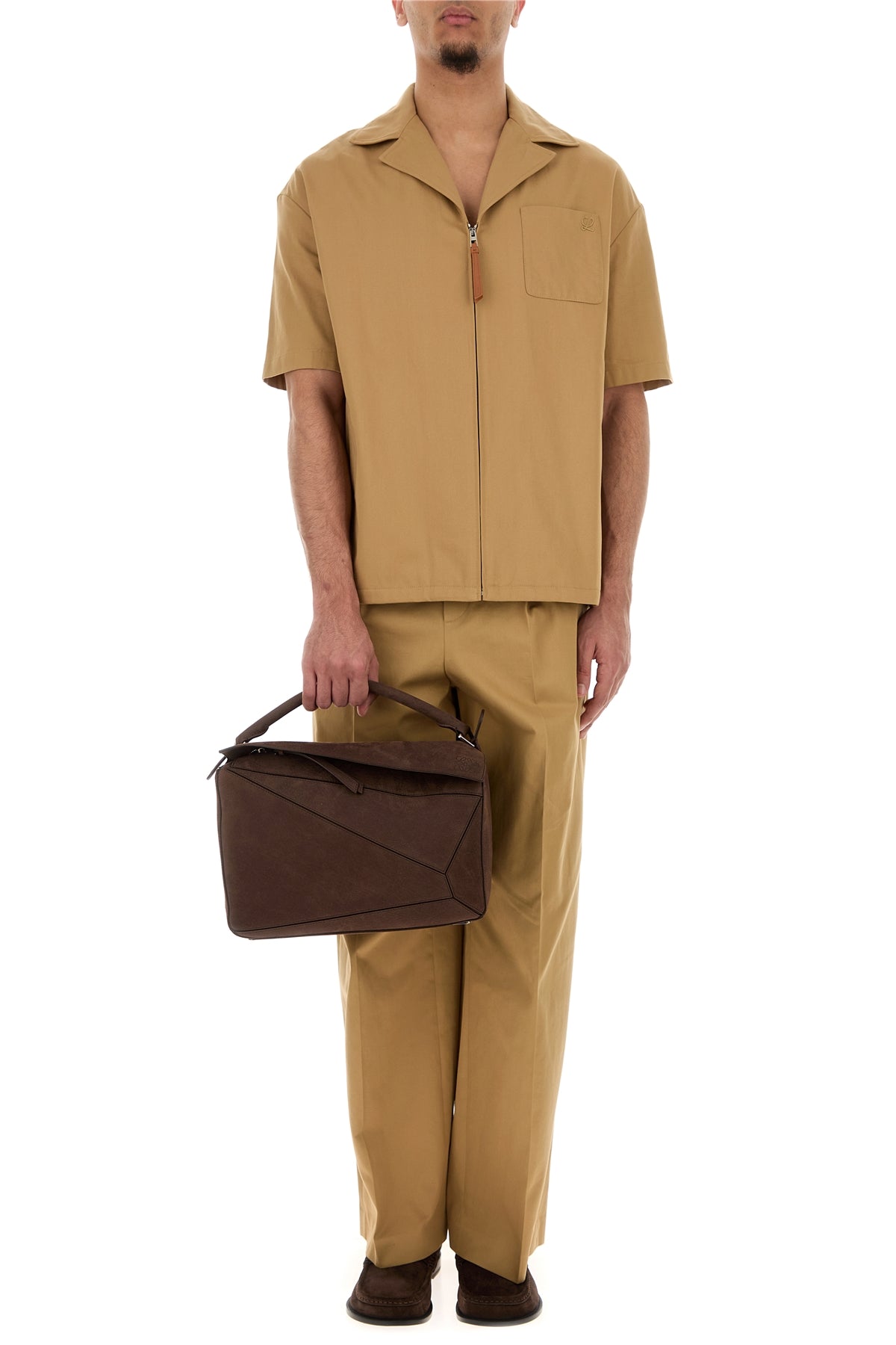 Short-sleeve shirt realized in pure cotton gabardine characterized by tonal LOEWE L embroidery on the chest.