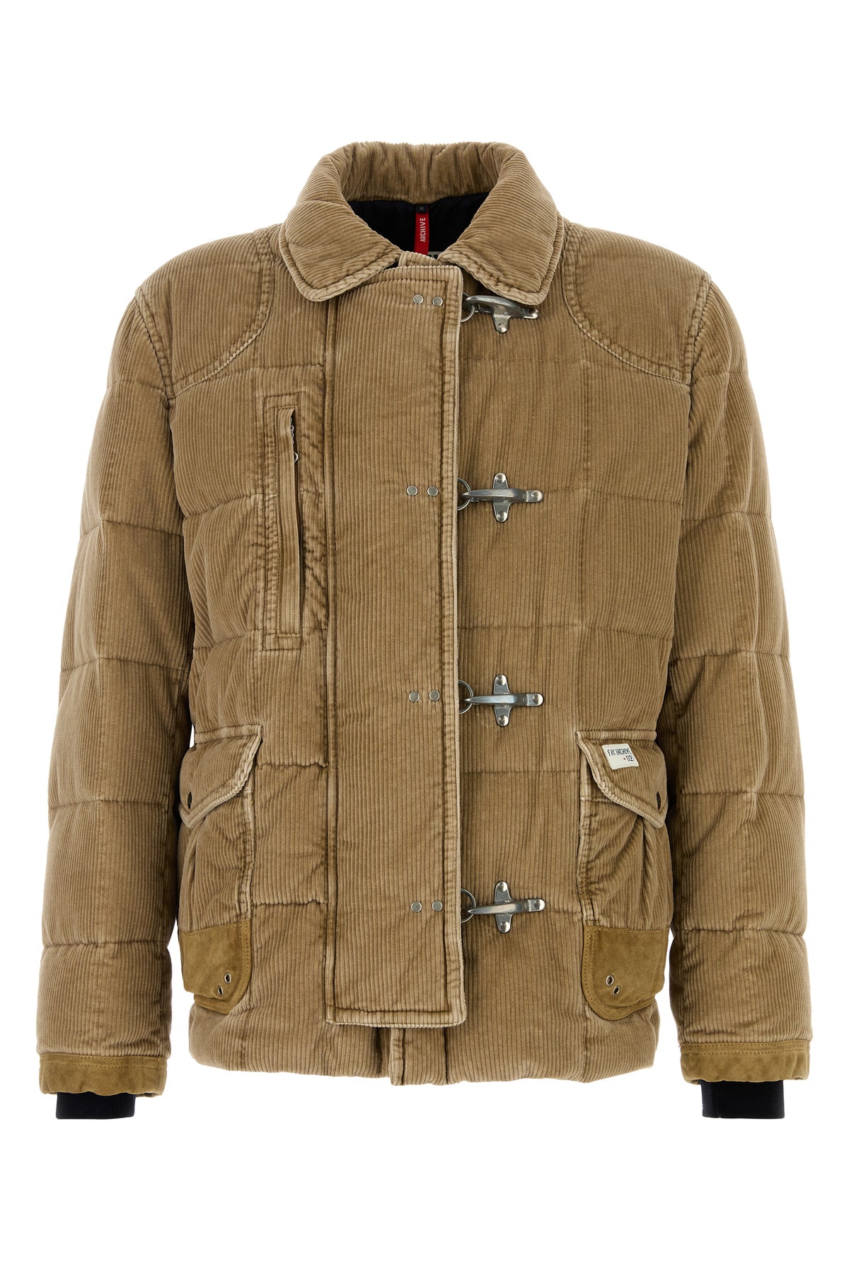 Down jacket realized in quilted corduroy enriched by contrasting logoed patch at the front.