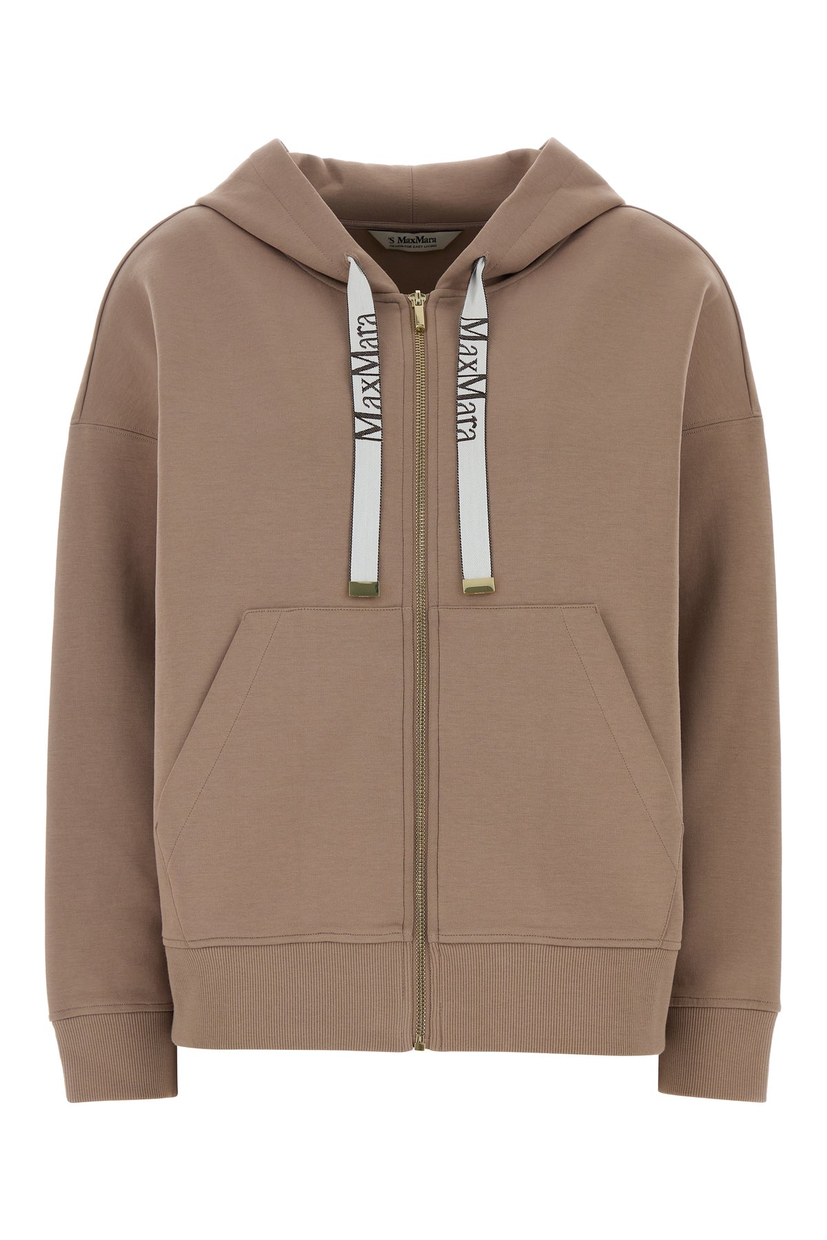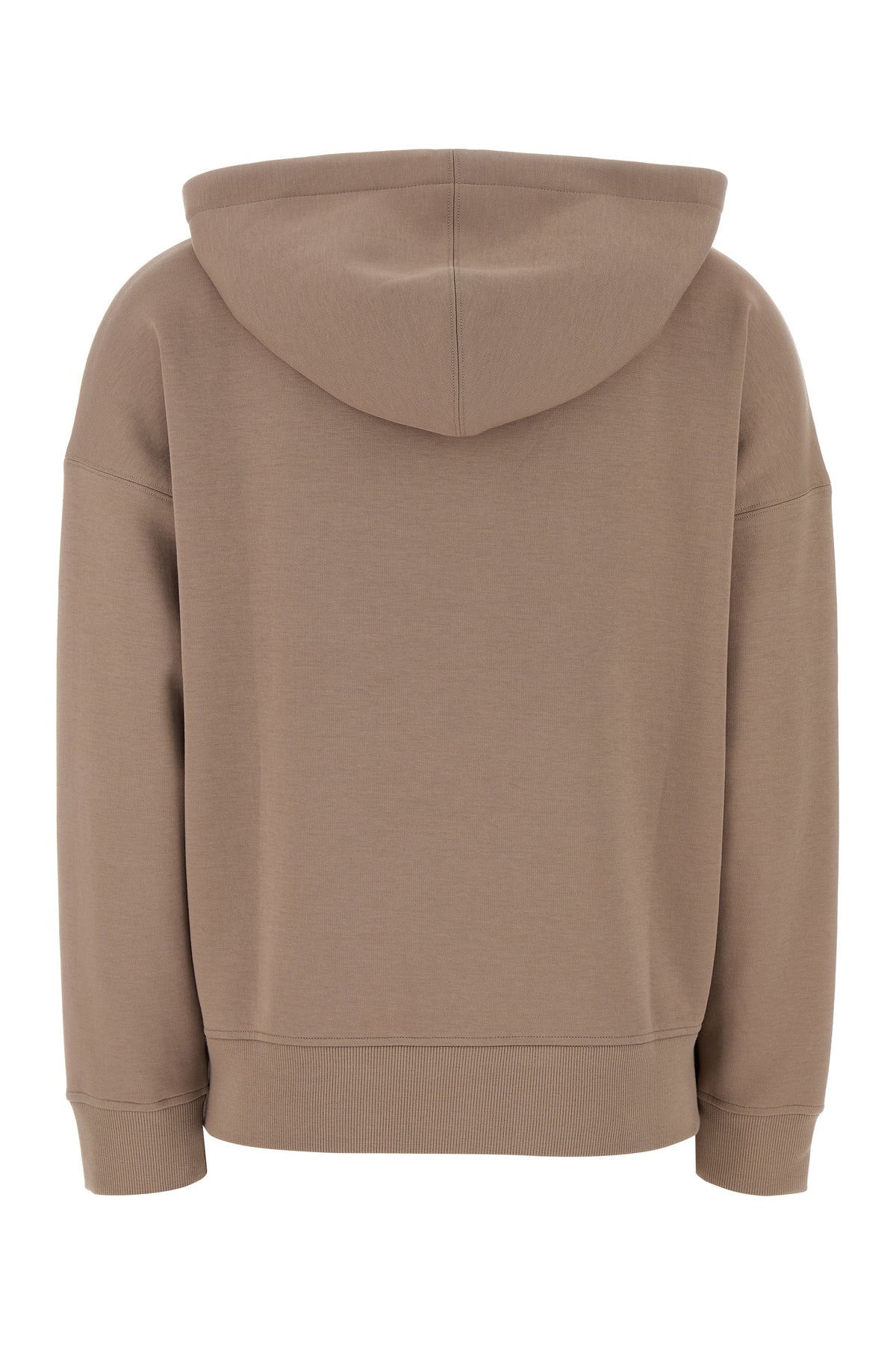 Sweatshirt realized in cotton blend characterized by logoed maxi drawstring hood.