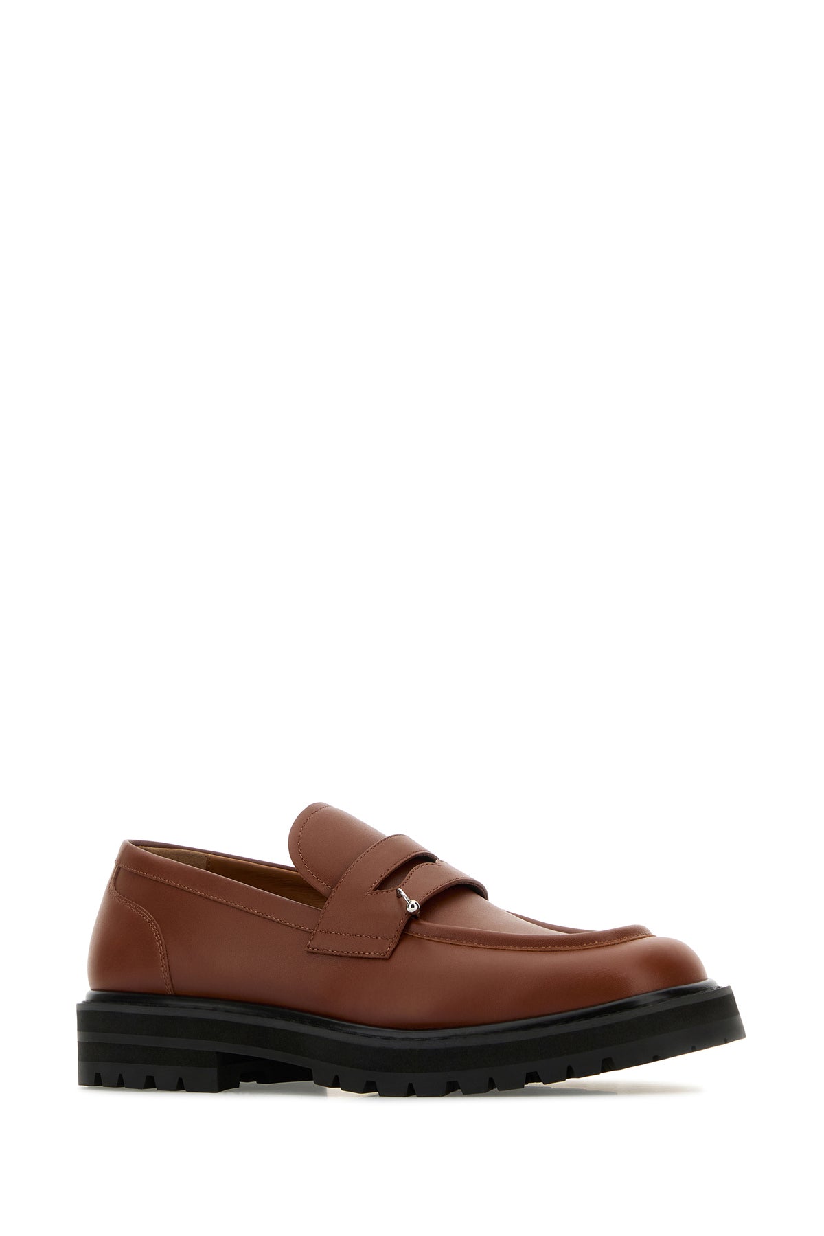 Loafers realized in smooth calf leather enriched by metal piercing detail on the vamp.