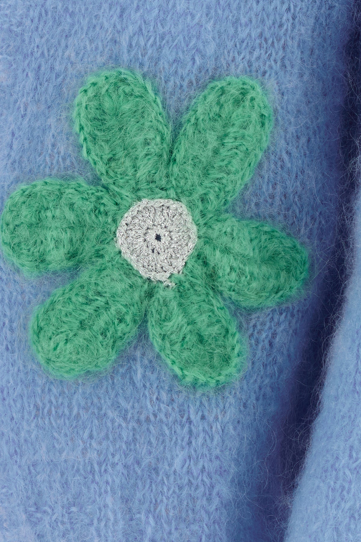 Cardigan realized in mohair blend characterized by floral embroideries on the entire surface.
