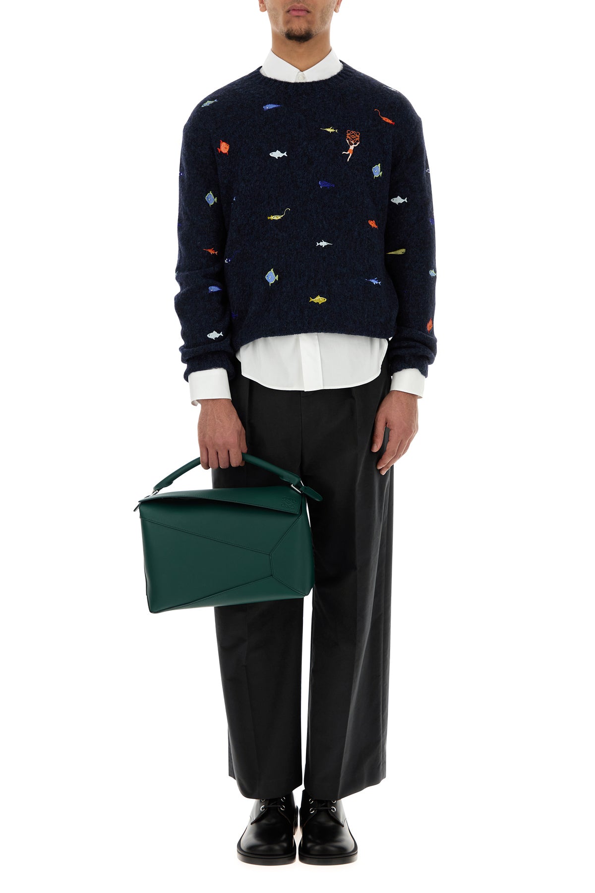 Pant realized in stretch cotton enriched by contrasting logoed label at the back.