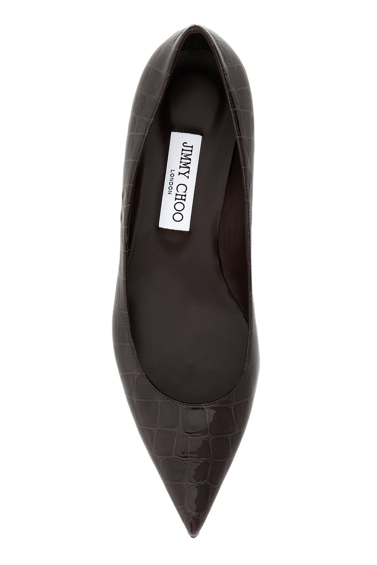 Pumps realized in crocodile-motif embossed polished-finish leather.