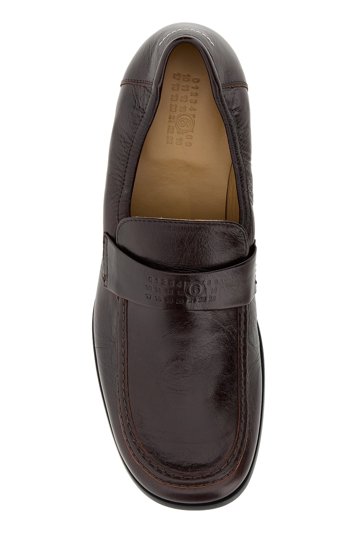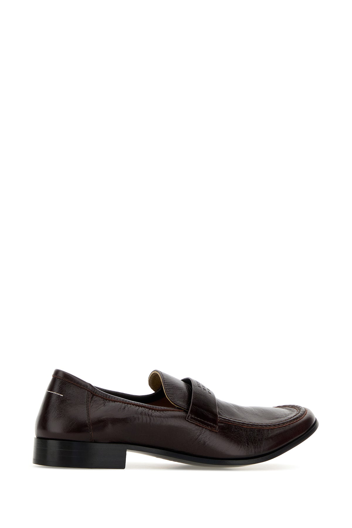 Loafers realized in vintage effect leather characterized by embossed logo on the vamp and iconic contrasting stitching at the back.