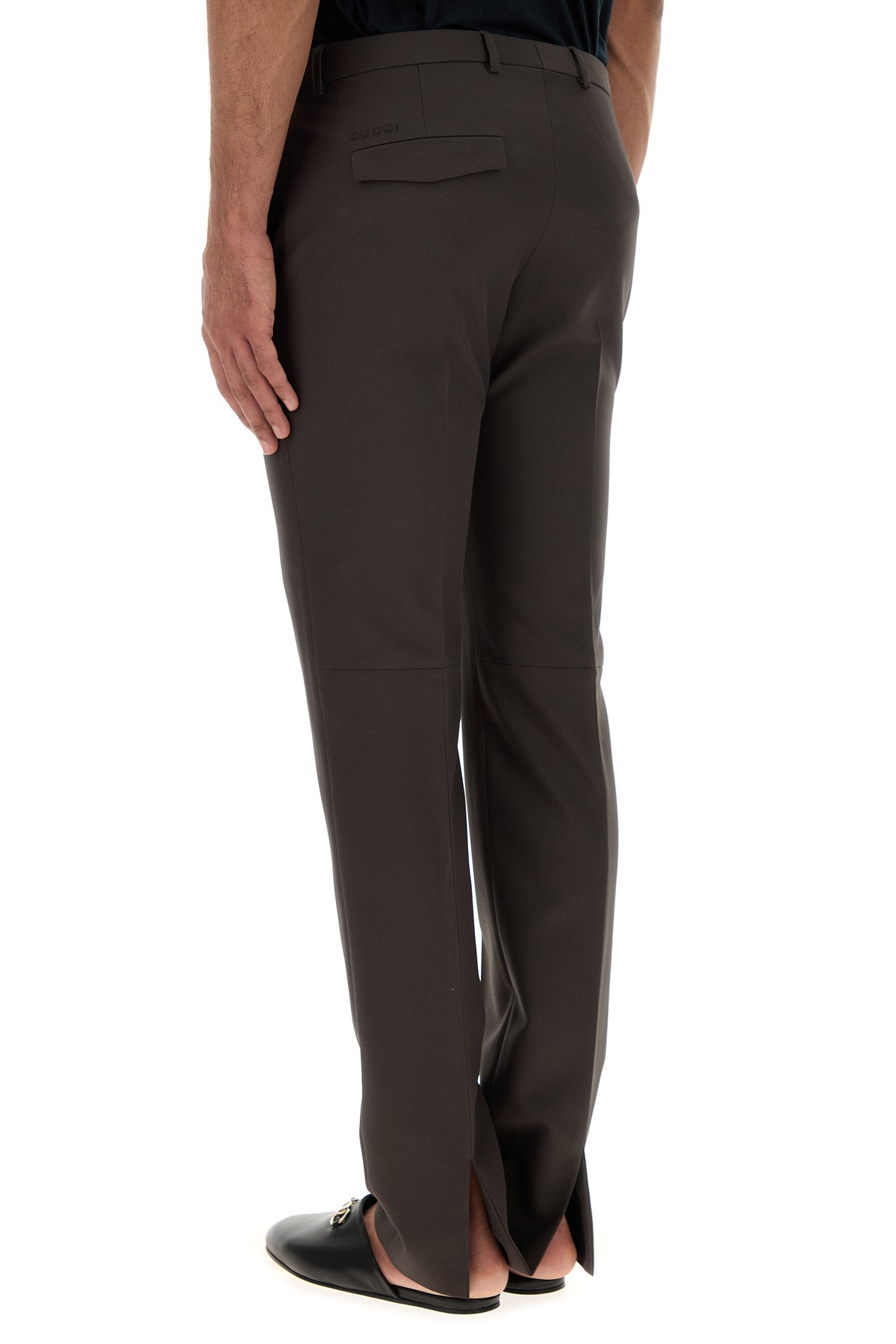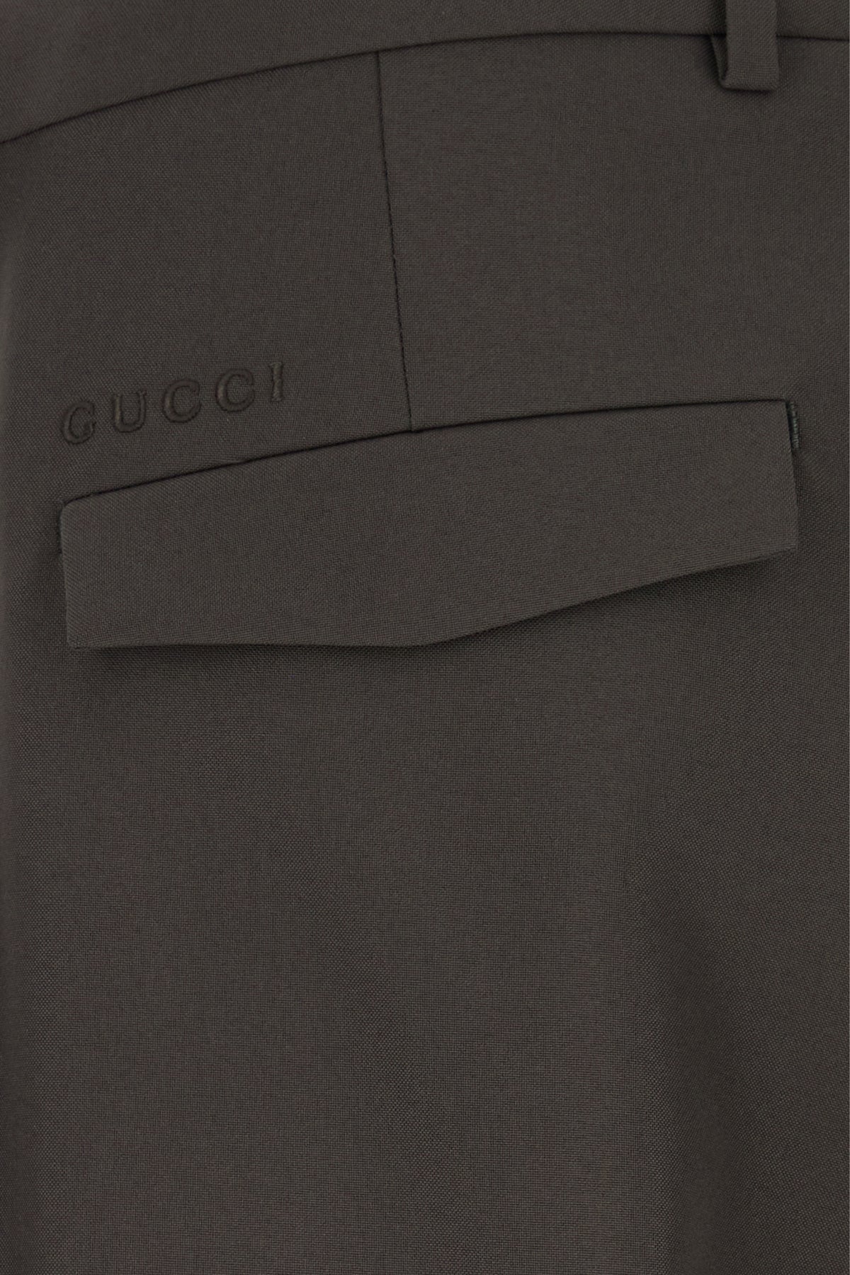Pant realized in panama characterized by tonal Gucci embroidery at the back.