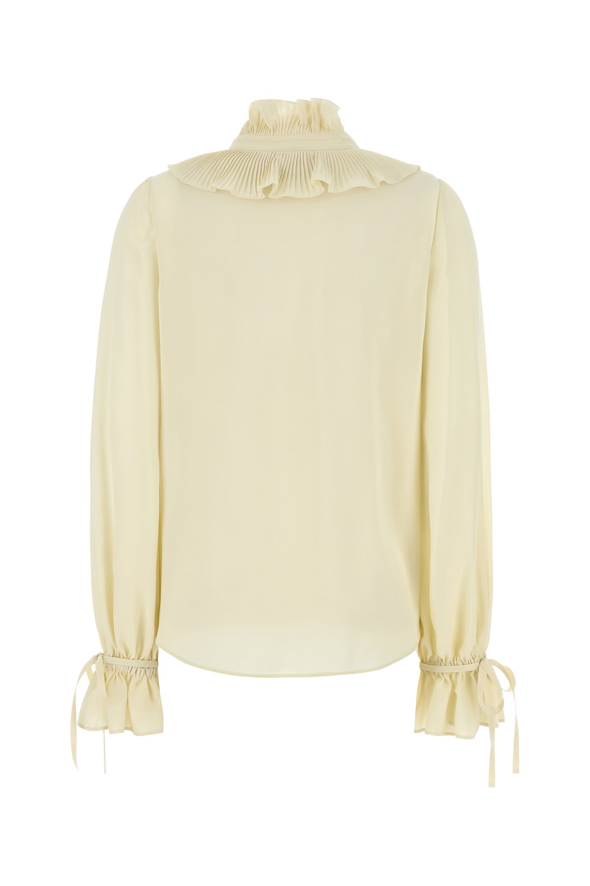 Shirt realized in pure silk crepe characterized by peculiar pleated collar.