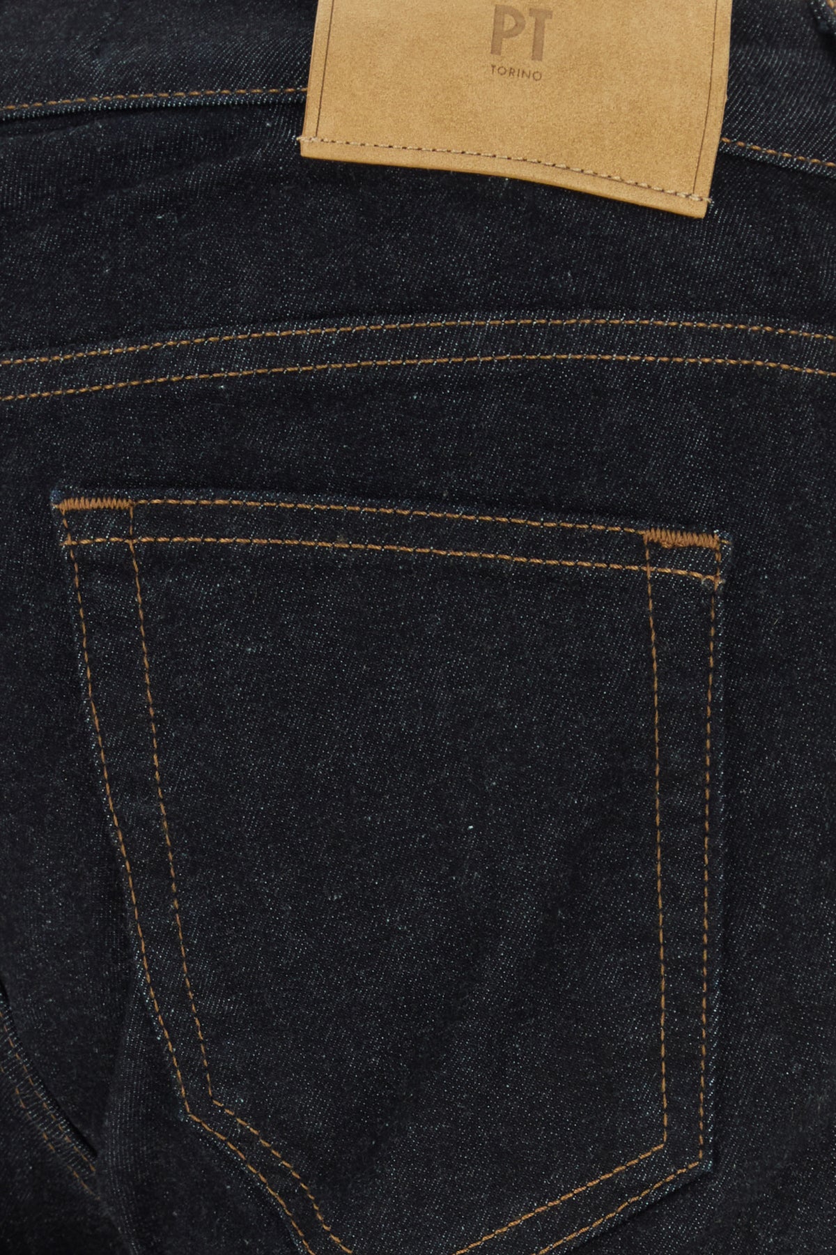 Jeans realized in stretch cotton blend denim enriched by contrasting logoed label at the back.