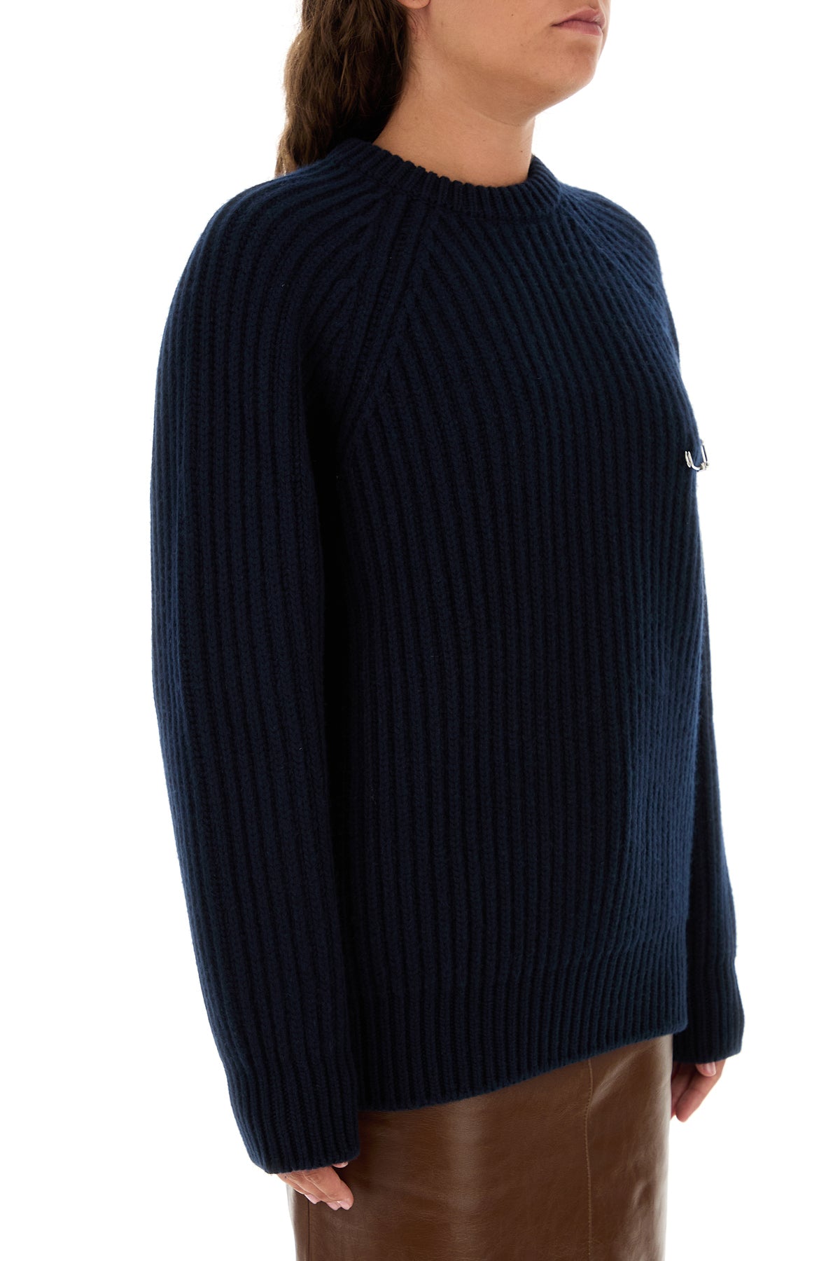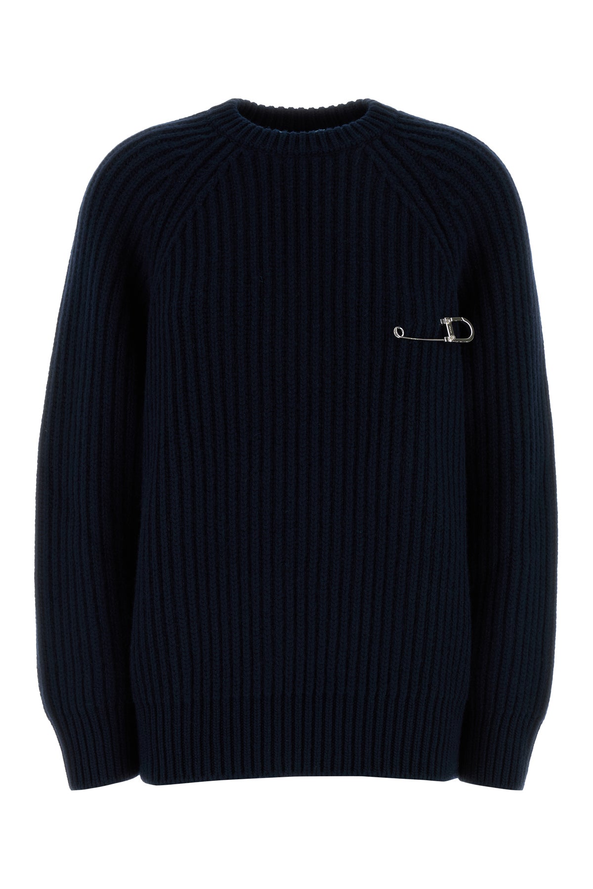 Sweater realized in virgin wool and cashmere enriched by detachable decorative pin on the chest.