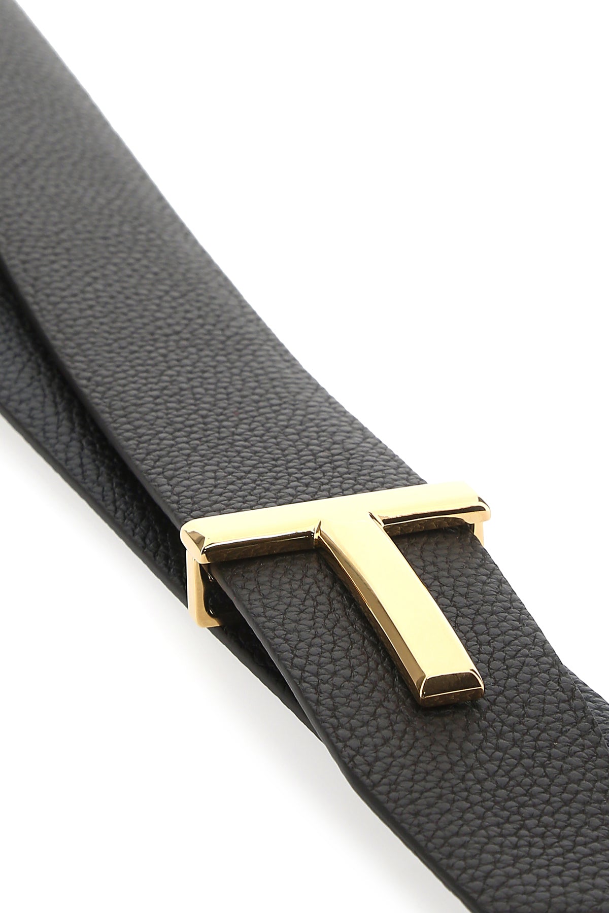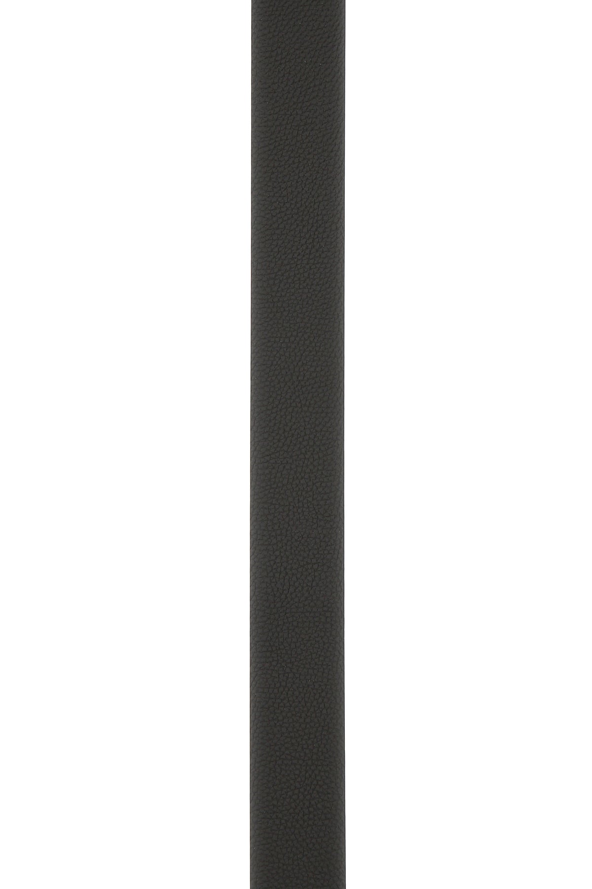 Belt realized in pebble leather enriched by metal logoed detail at the front.