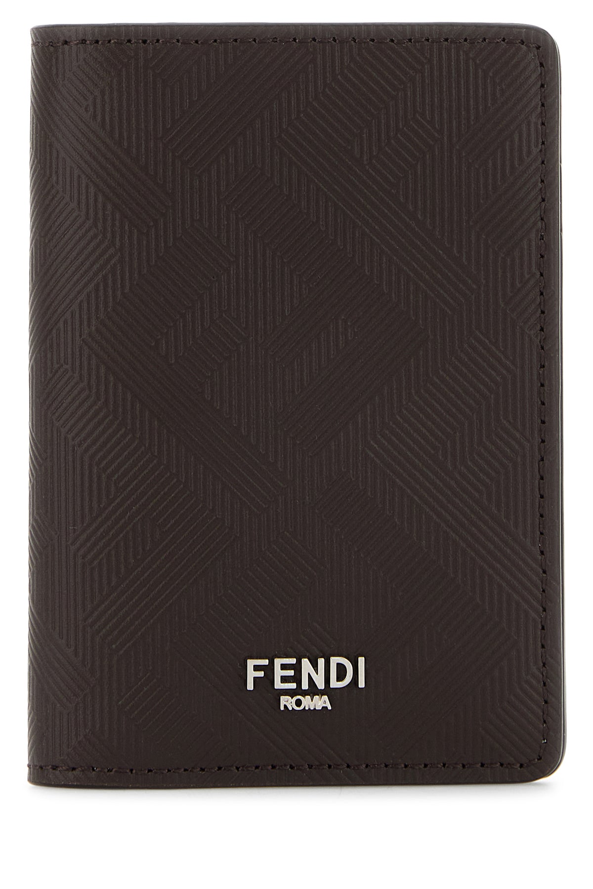 Card holder realized in calf leather characterized by FF motif embossed on the entire surface enriched by metal lettering logo at the front.