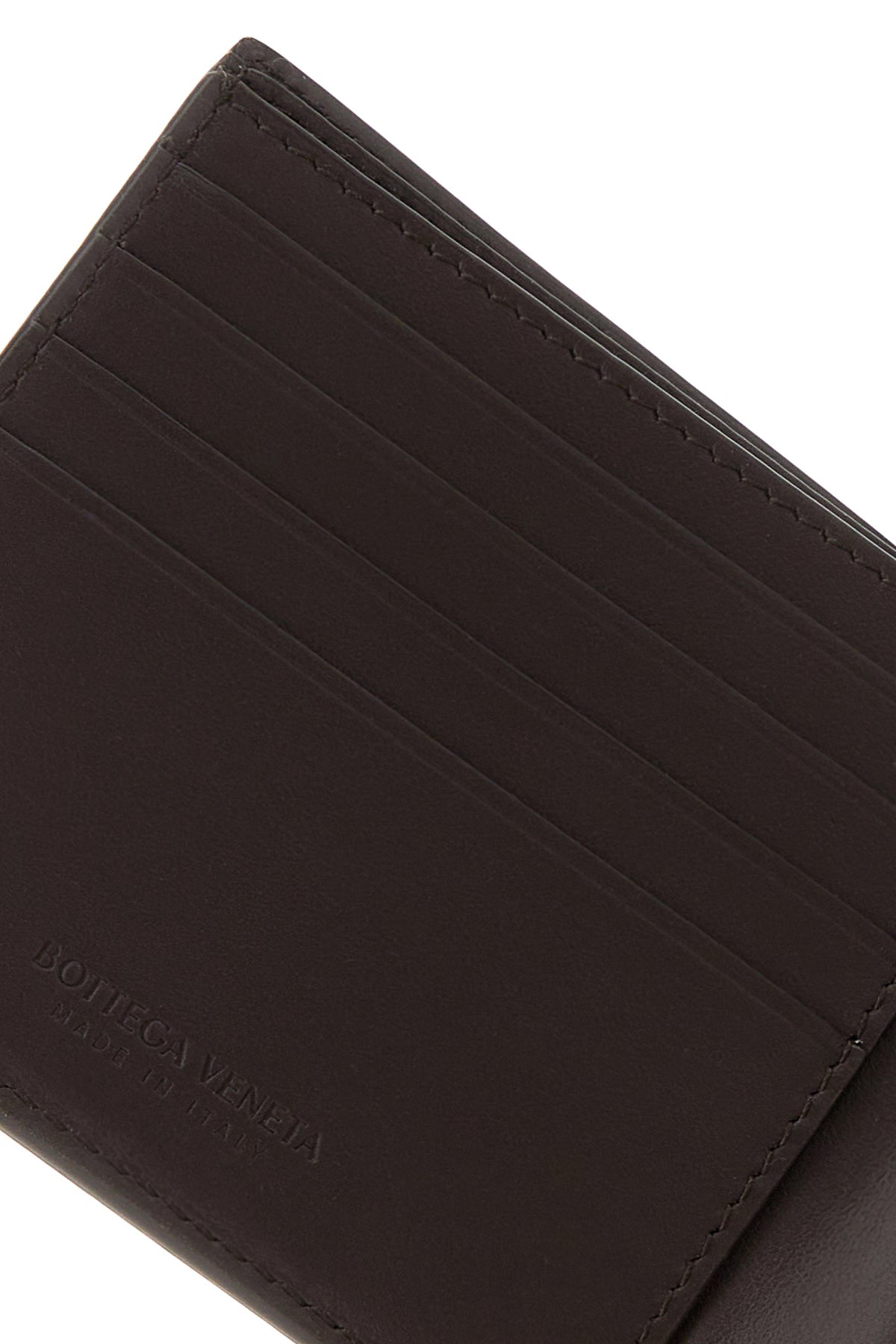 Wallet realized in calf leather characterized by iconic Intrecciato motif on the entire surface.