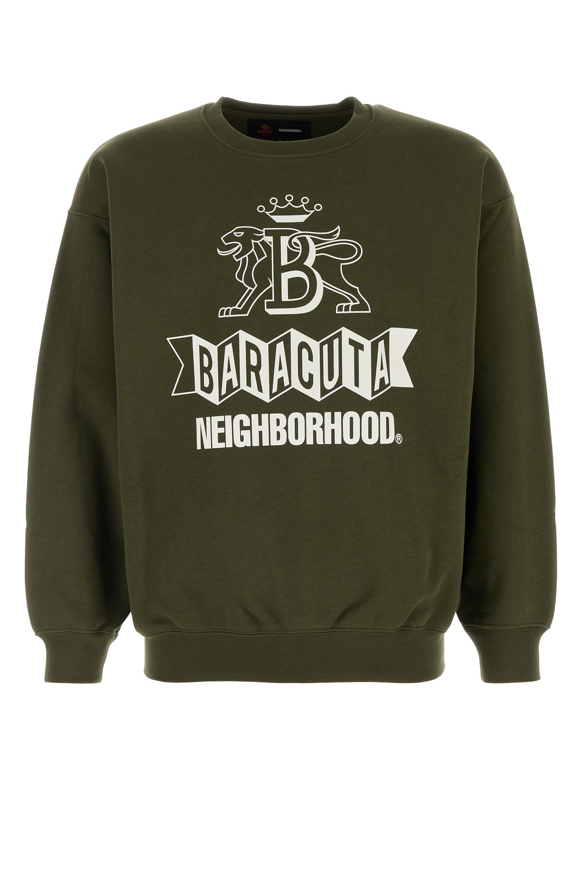 - Ribbed crew-neck, cuffs and hemline
