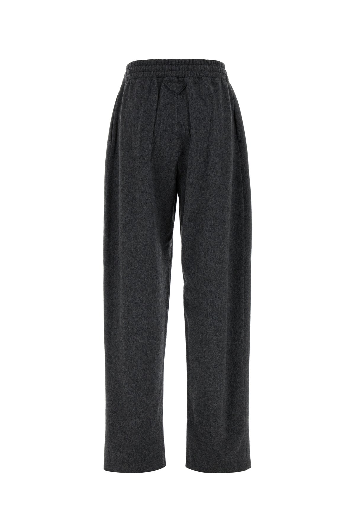 Pant realized in virgin wool and cashmere enriched by iconic tonal fabric triangle at the back.