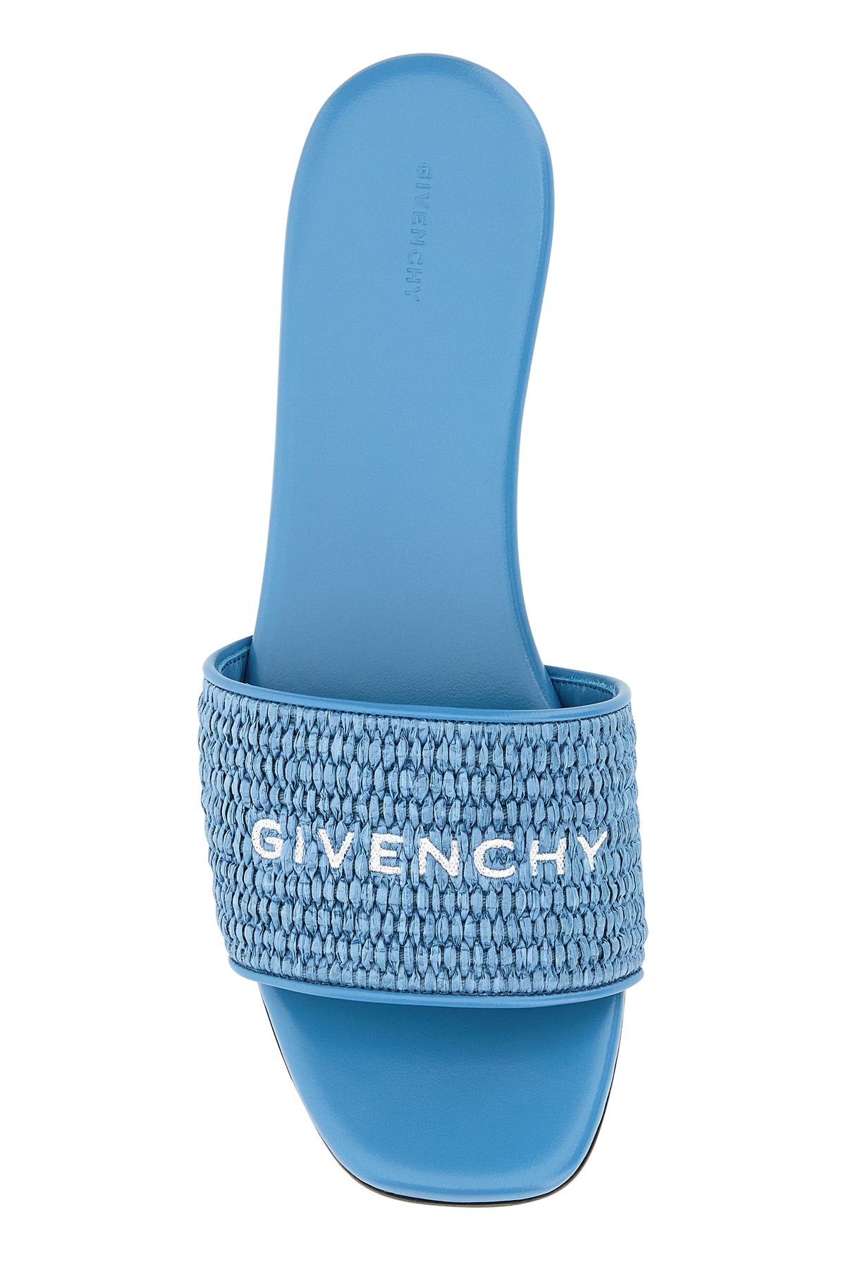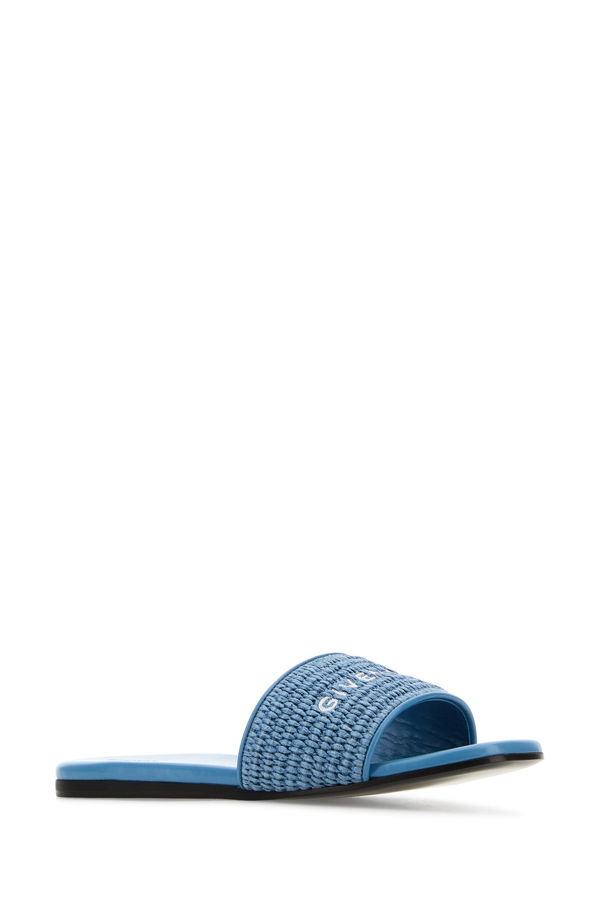 Slippers realized in raffia characterized by contrasting embroidered logo on the band.