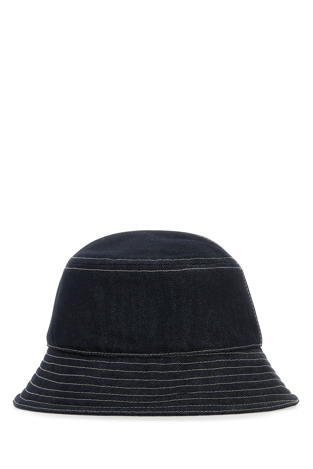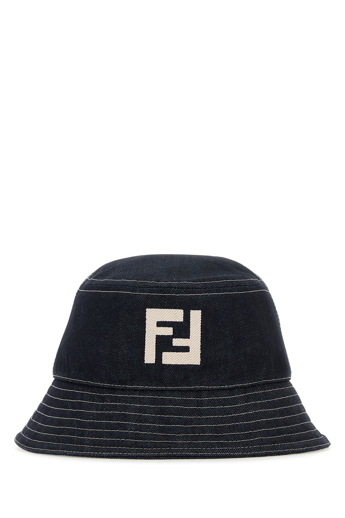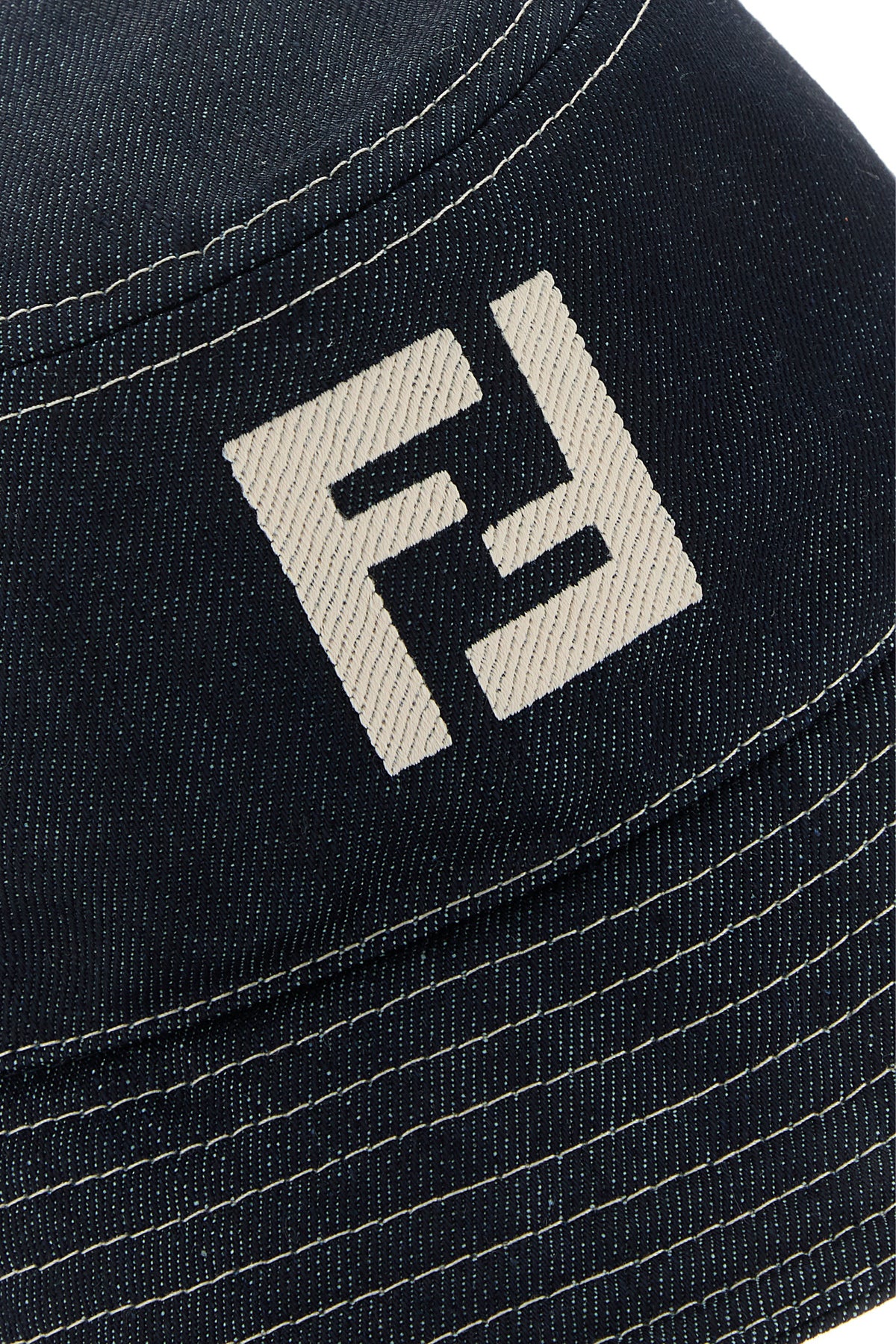 Bucket hat realized in pure cotton denim characterized by contrasting FF embroidery at the front and contrasting trimmings.