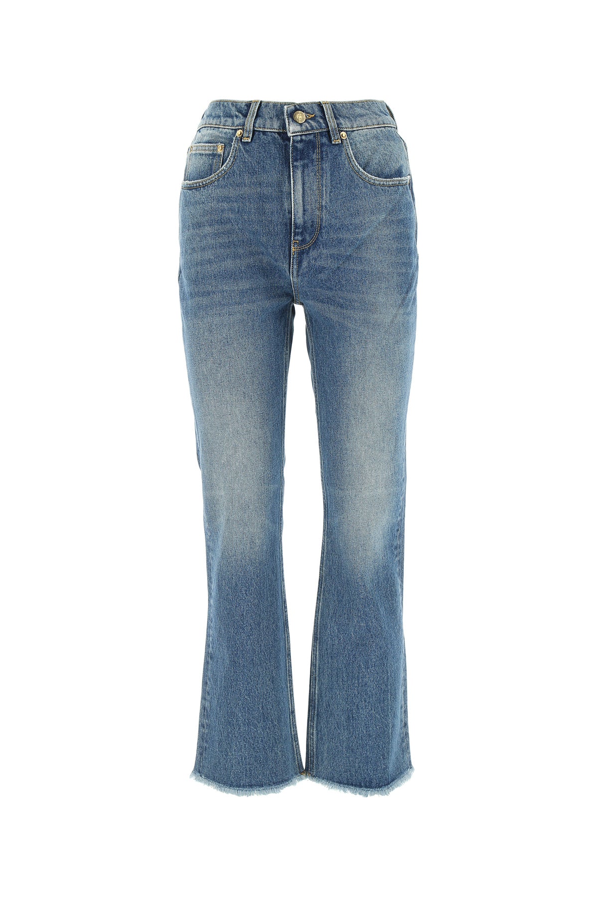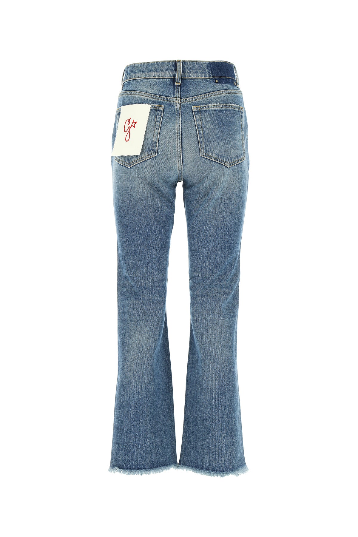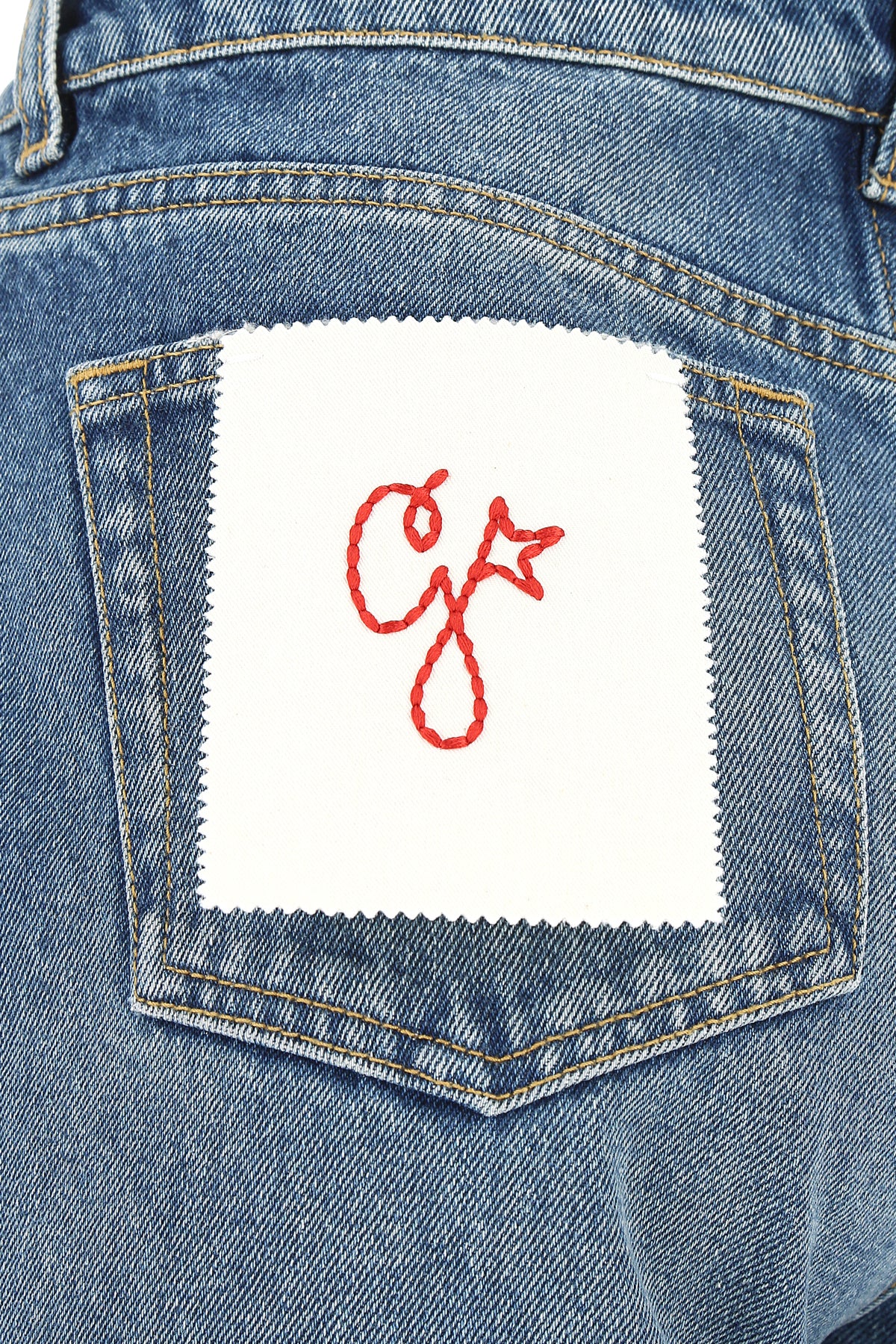 Jeans realized in pure stonewashed cotton denim enriched by contrasting logoed patch and decorative studs at the back.