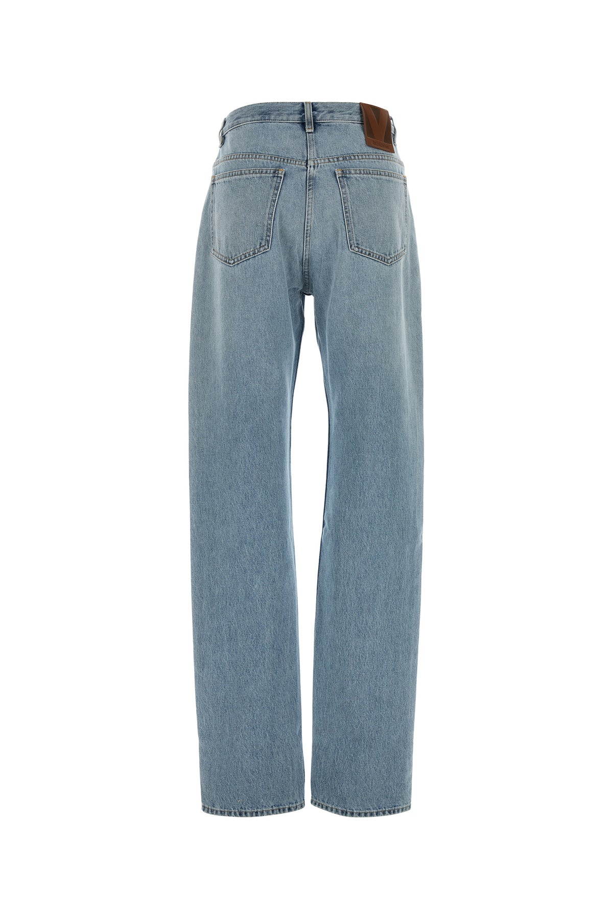Jeans realized in pure cotton denim enriched by contrasting logoed label at the back.