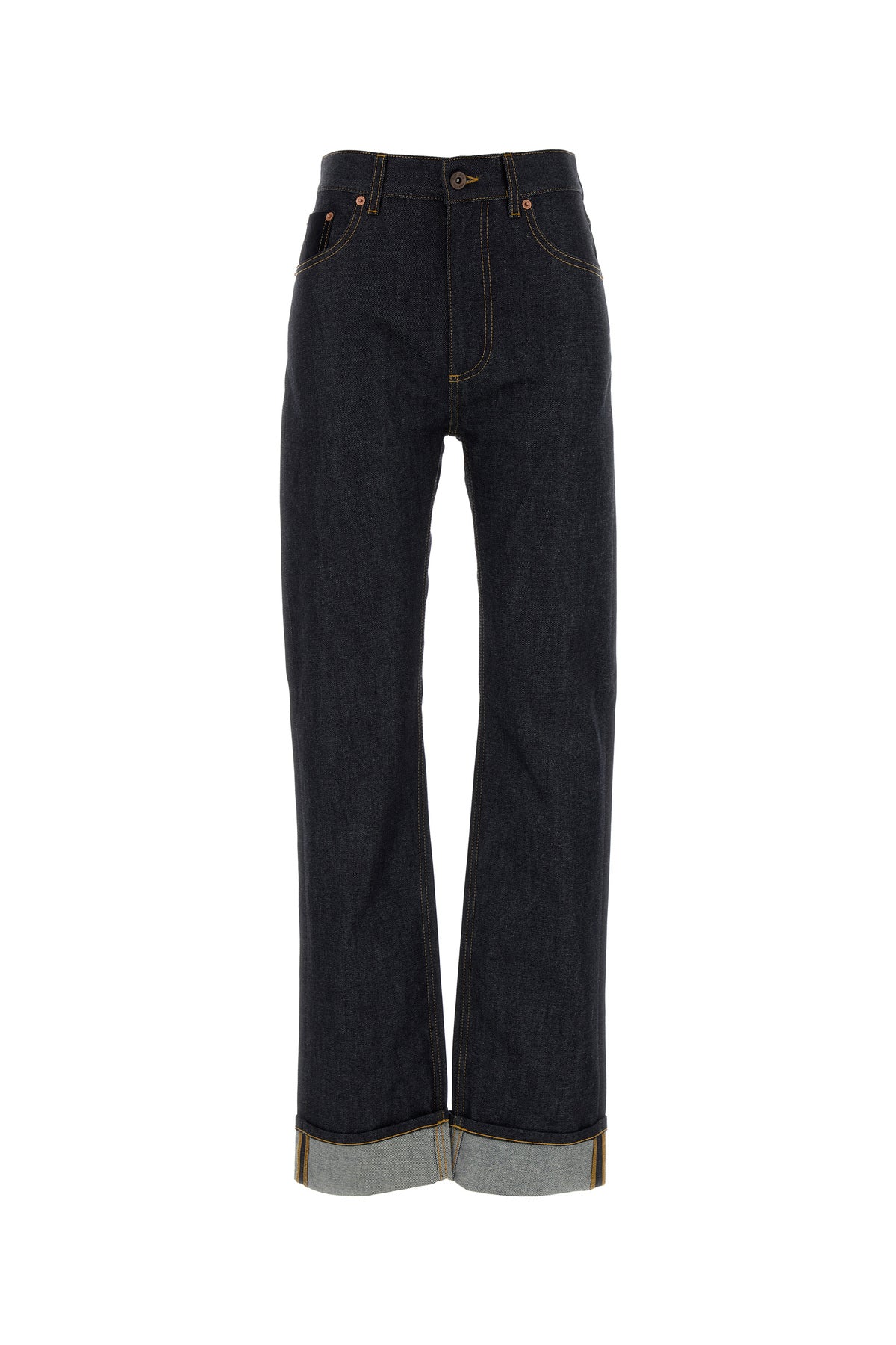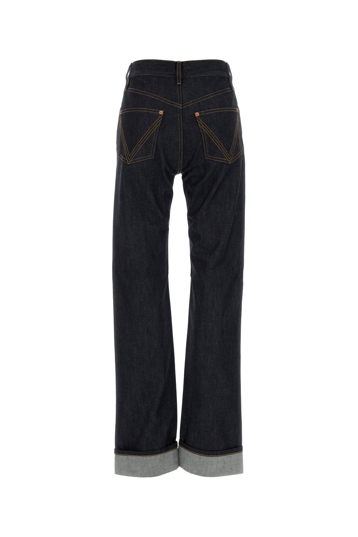 Jeans realized in pure cotton denim characterized by iconic Intrecciato motif on the patch pocket at the front.
