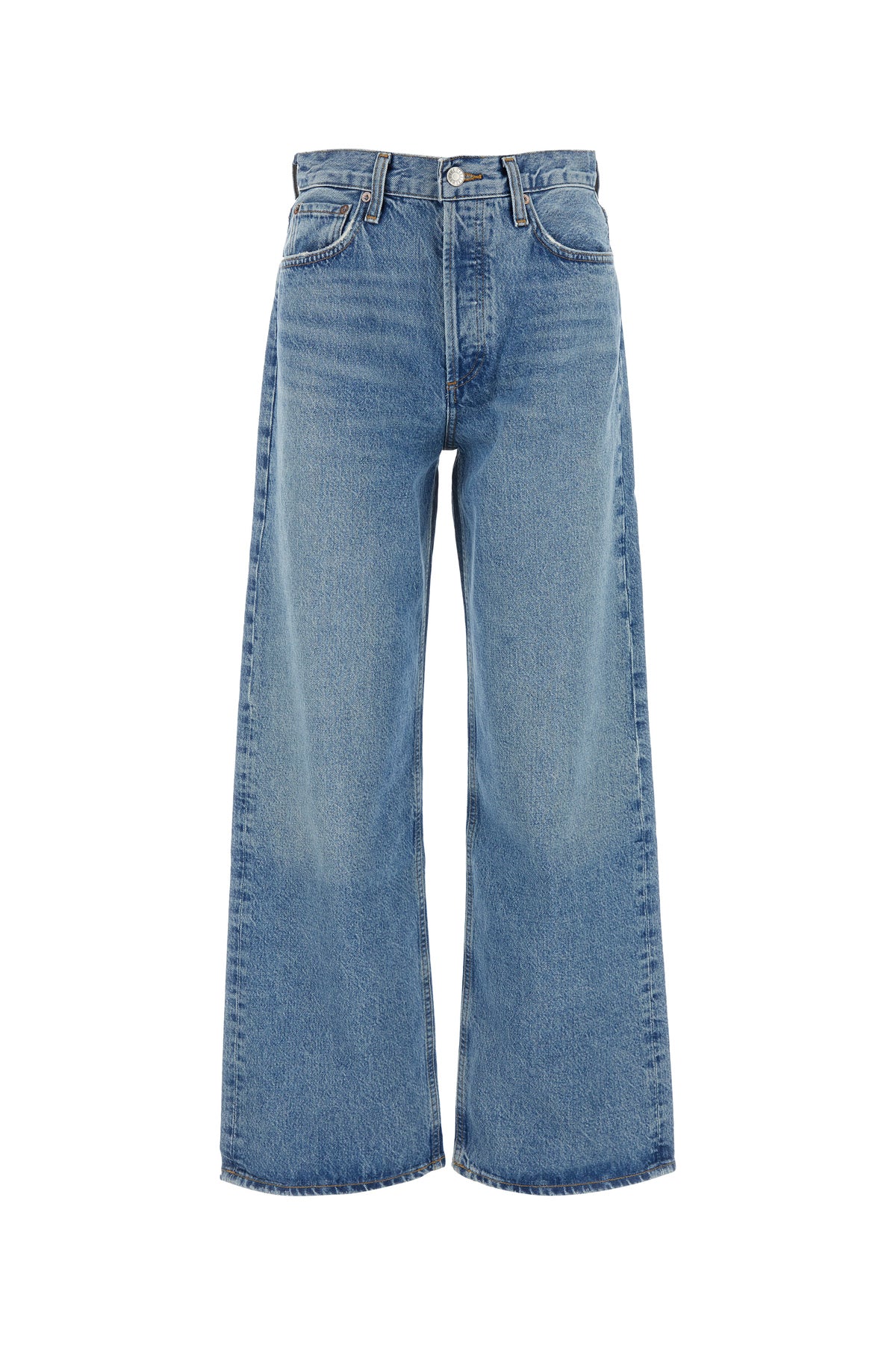 Boyfriend jeans realized in stonewashed organic cotton blend denim.