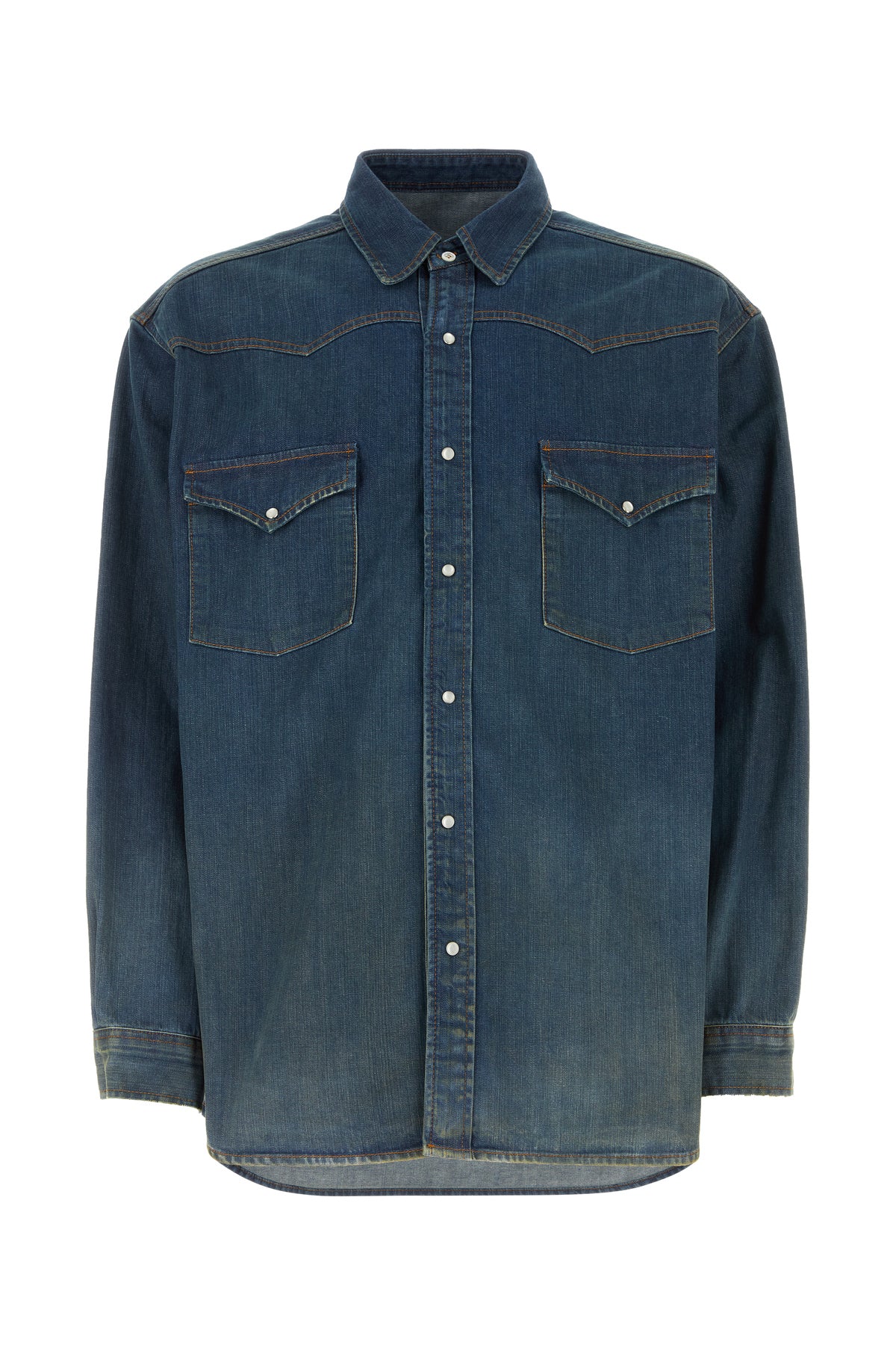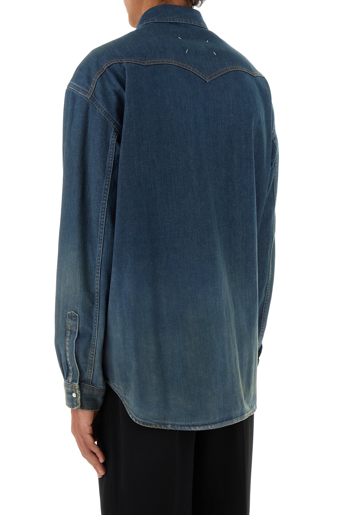 Shirt realized in pure stonewashed cotton characterized by contrasting iconic stitchings at the back.