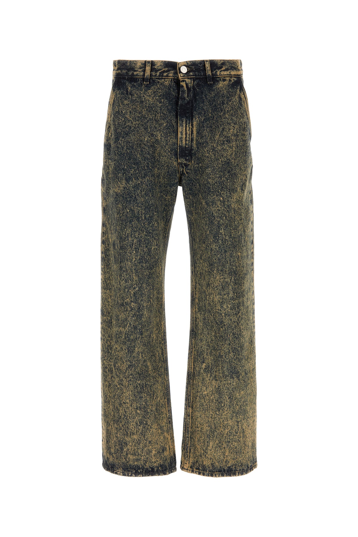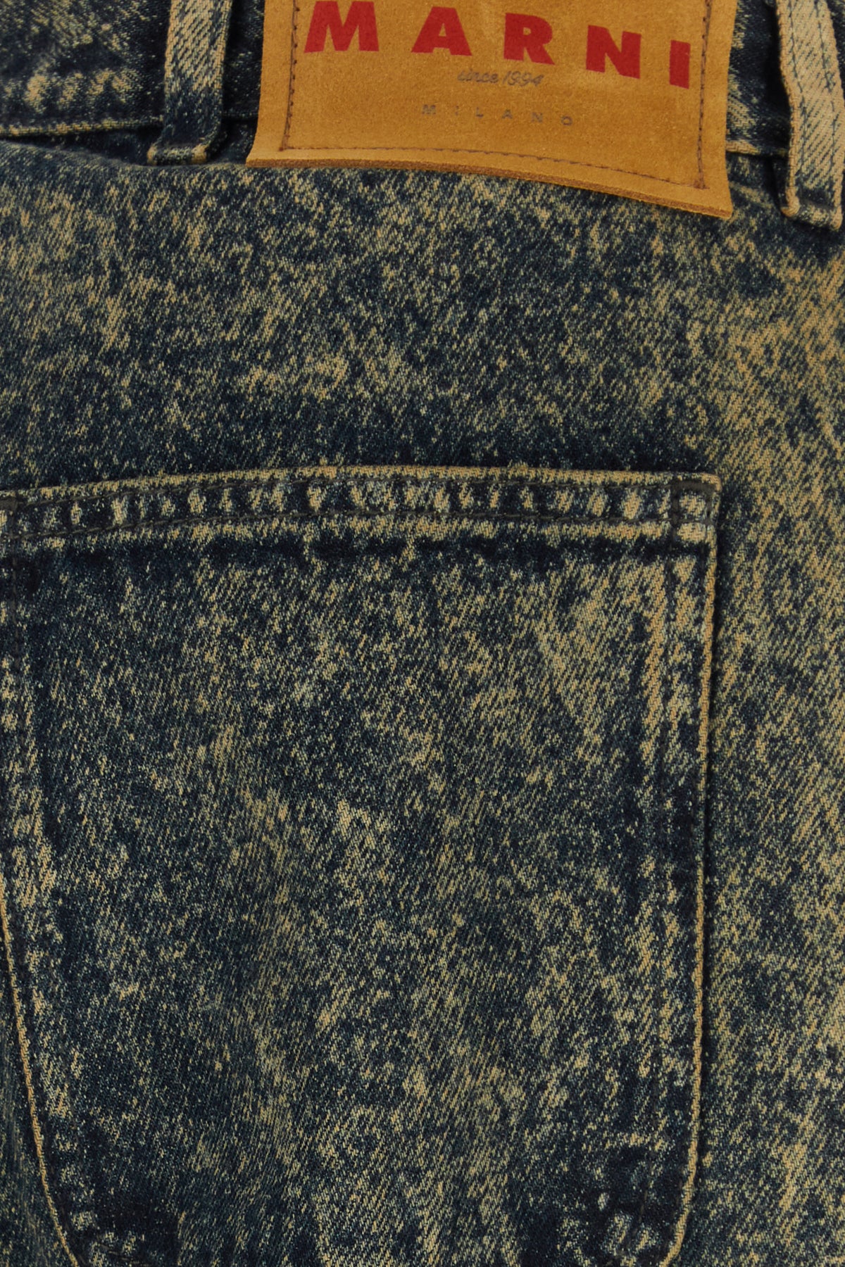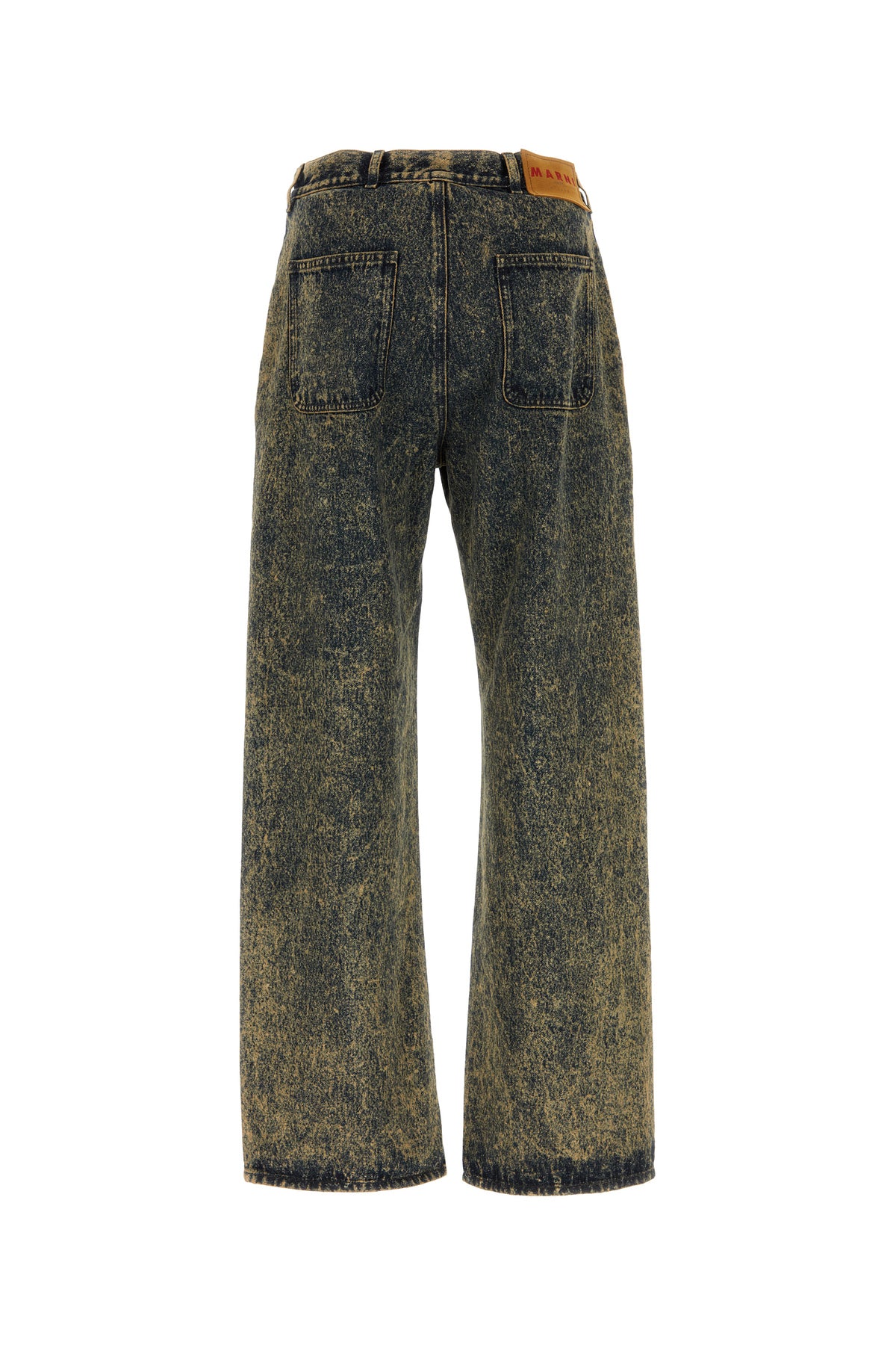 Wide-leg jeans realized in stonewashed pure cotton denim enriched by leather logoed label at the back.