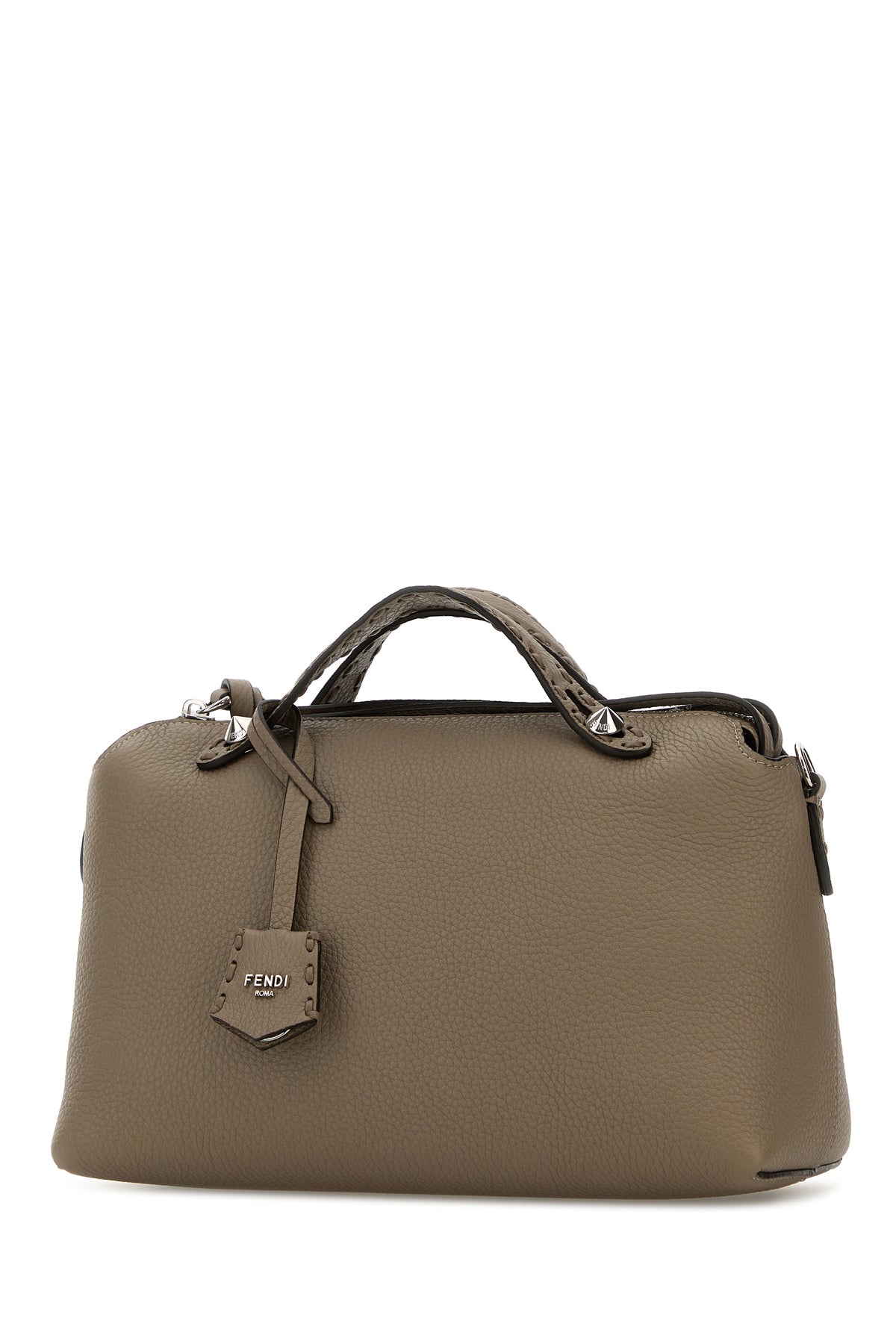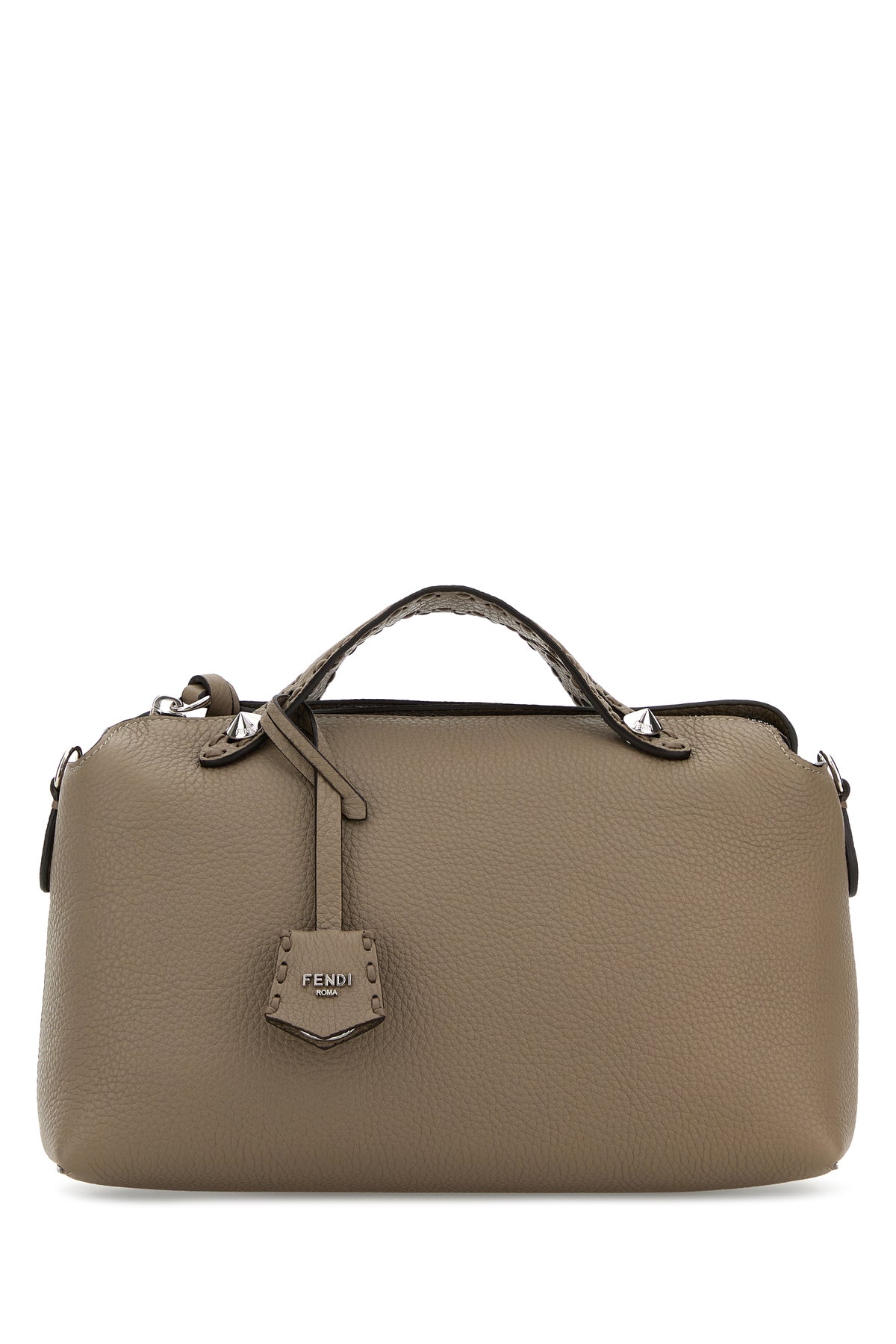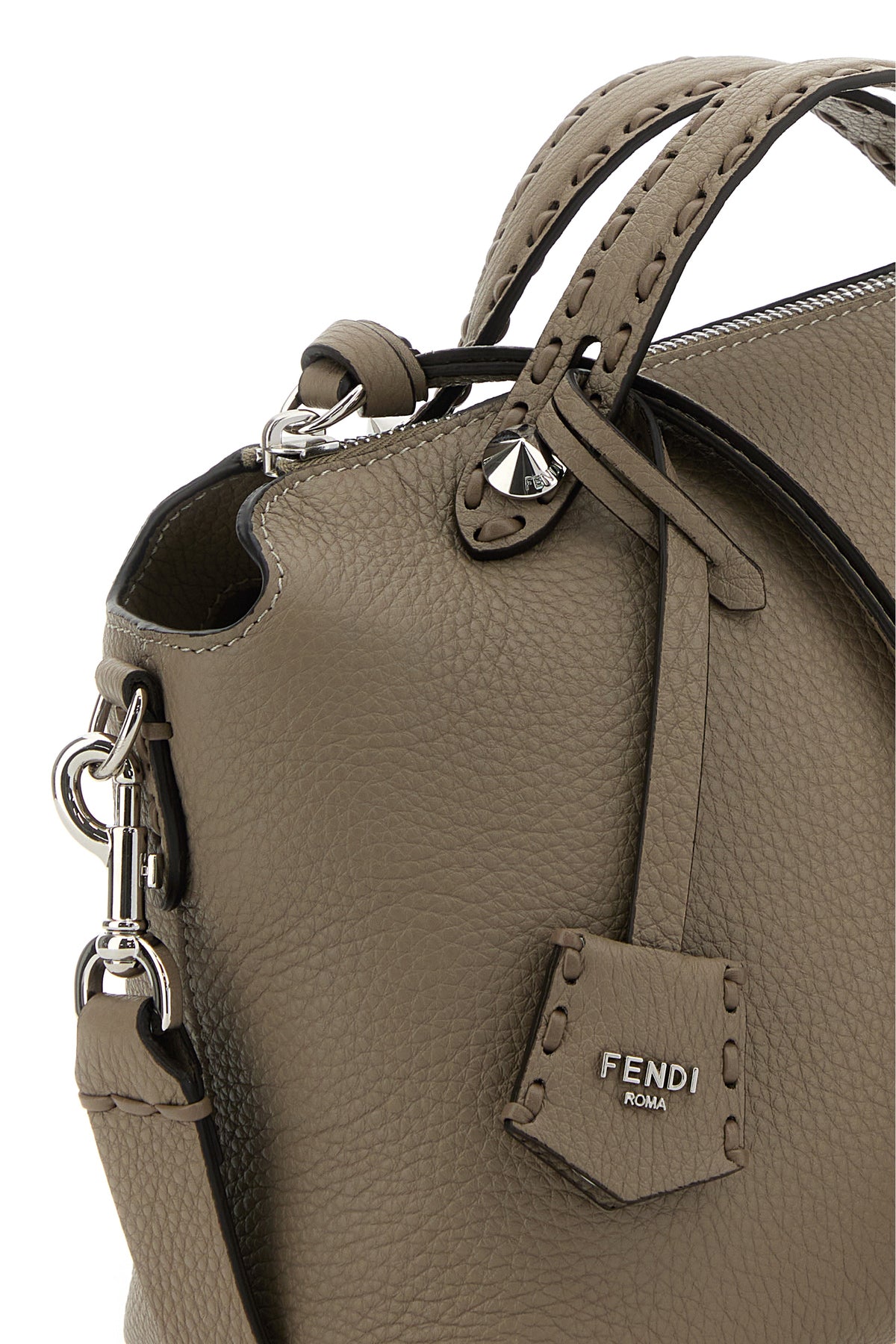 Handbag realized in calf leather enriched by detachable tonal leather keyring accessory with metal lettering logo.