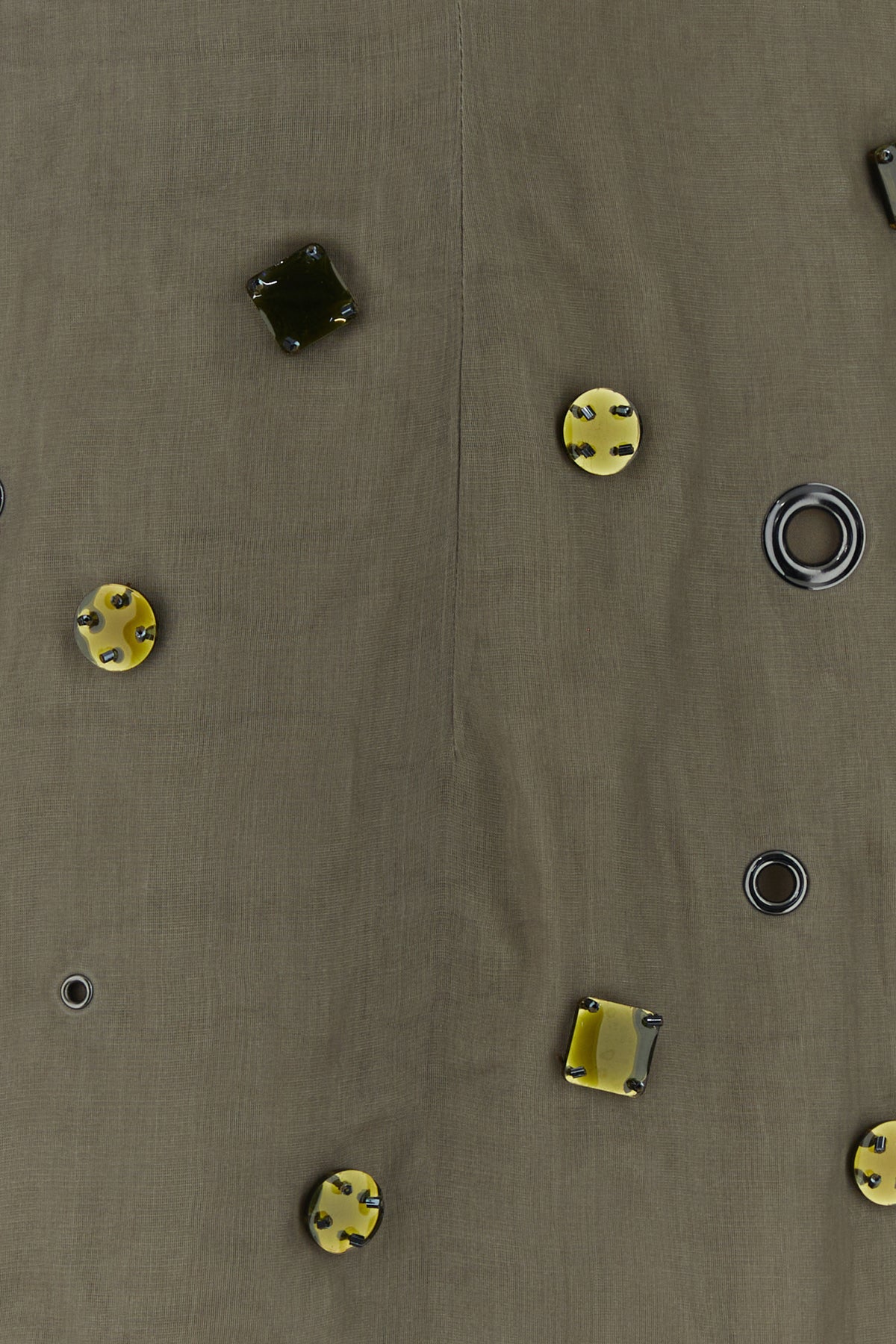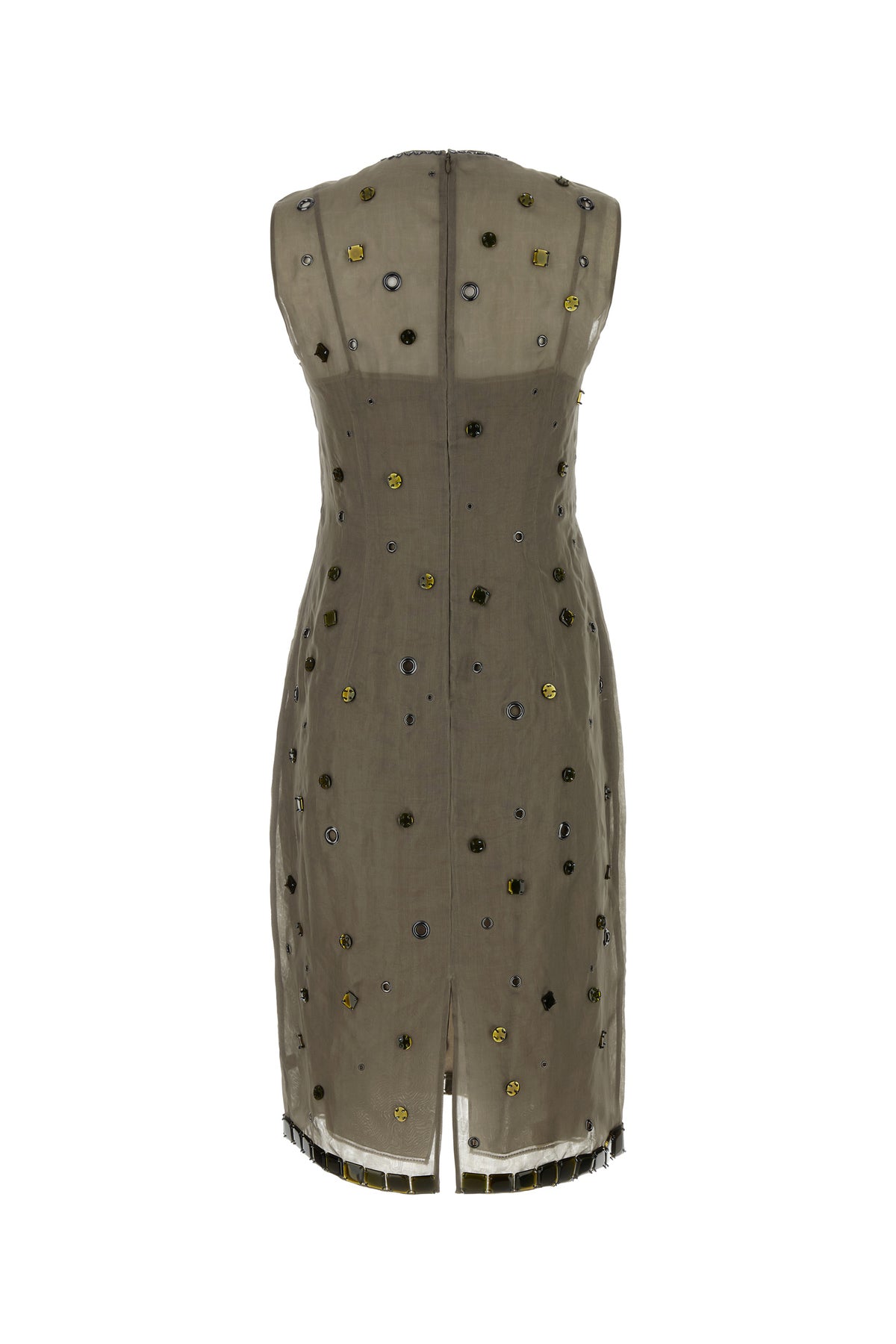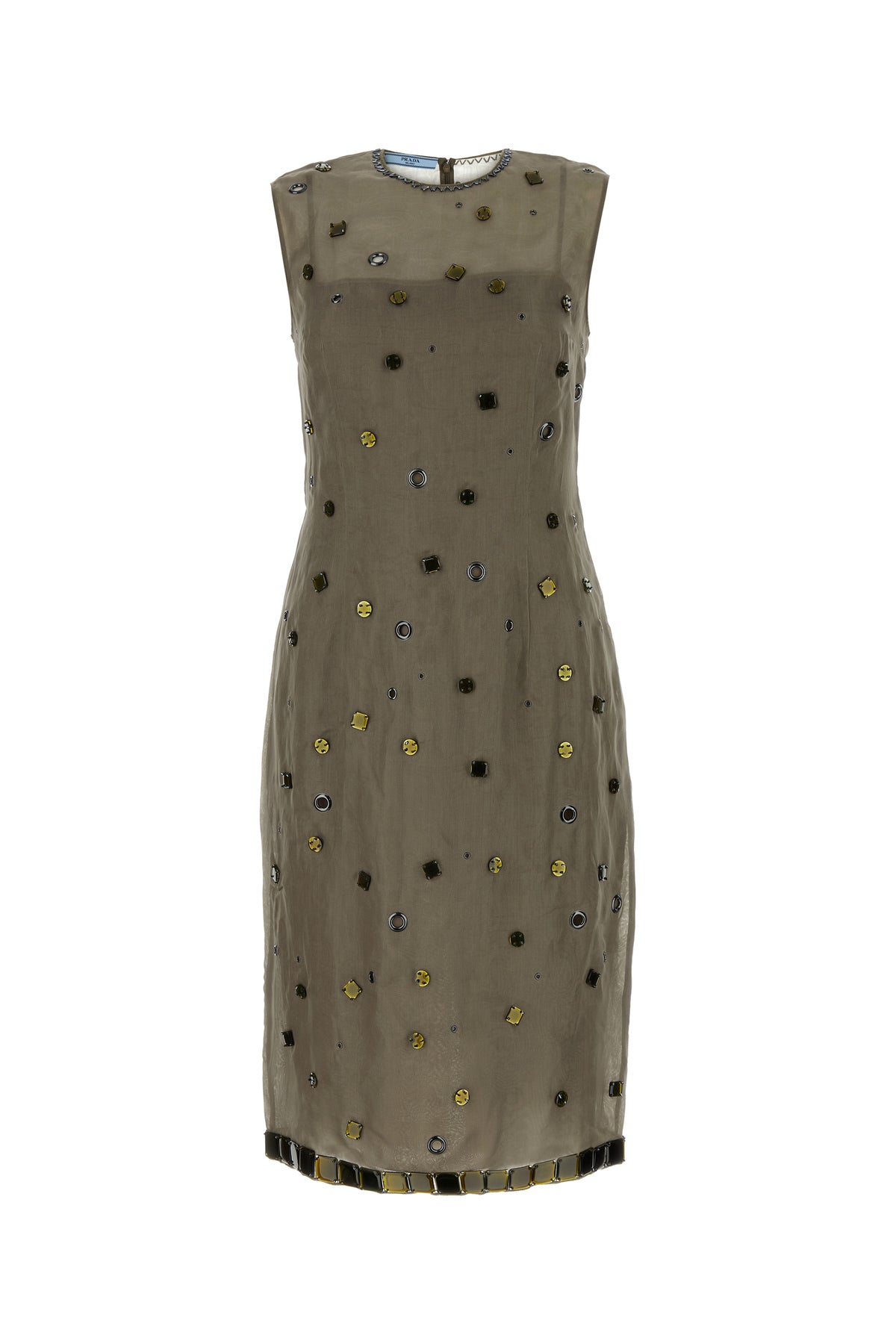 Dress realized in organza enriched by beads, studs and rhinestones on the entire surface.
