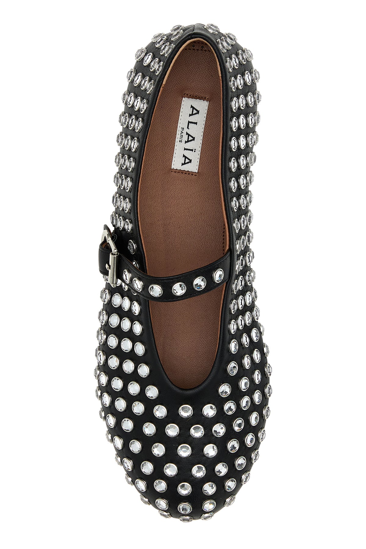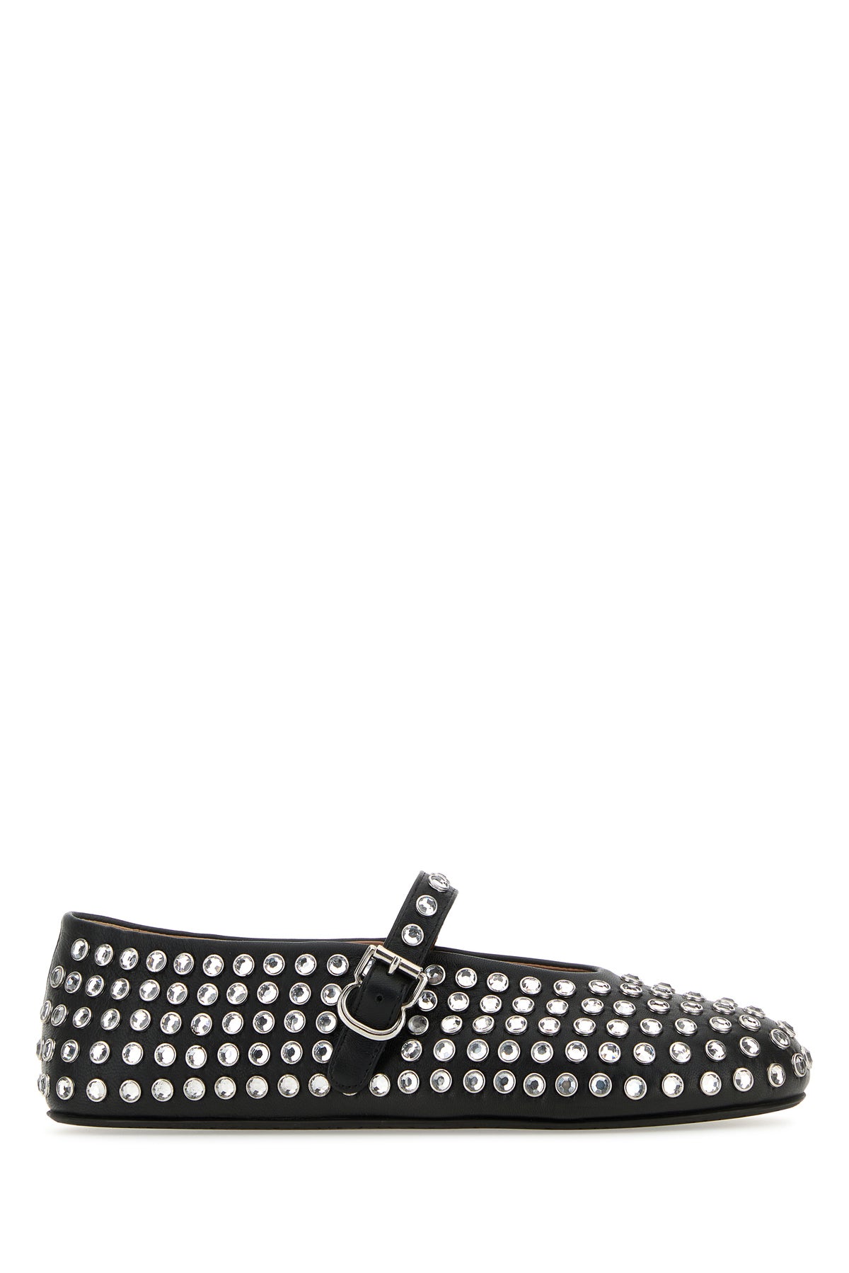 Ballerinas realized in lamb leather entirely covered by rhinestones.
