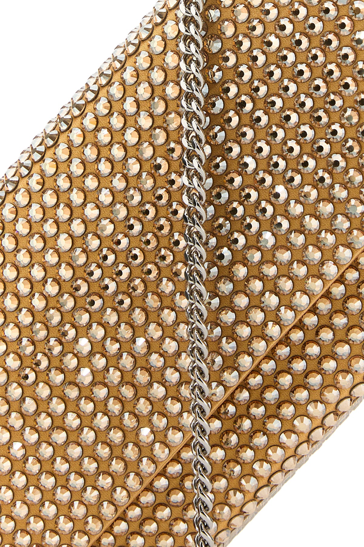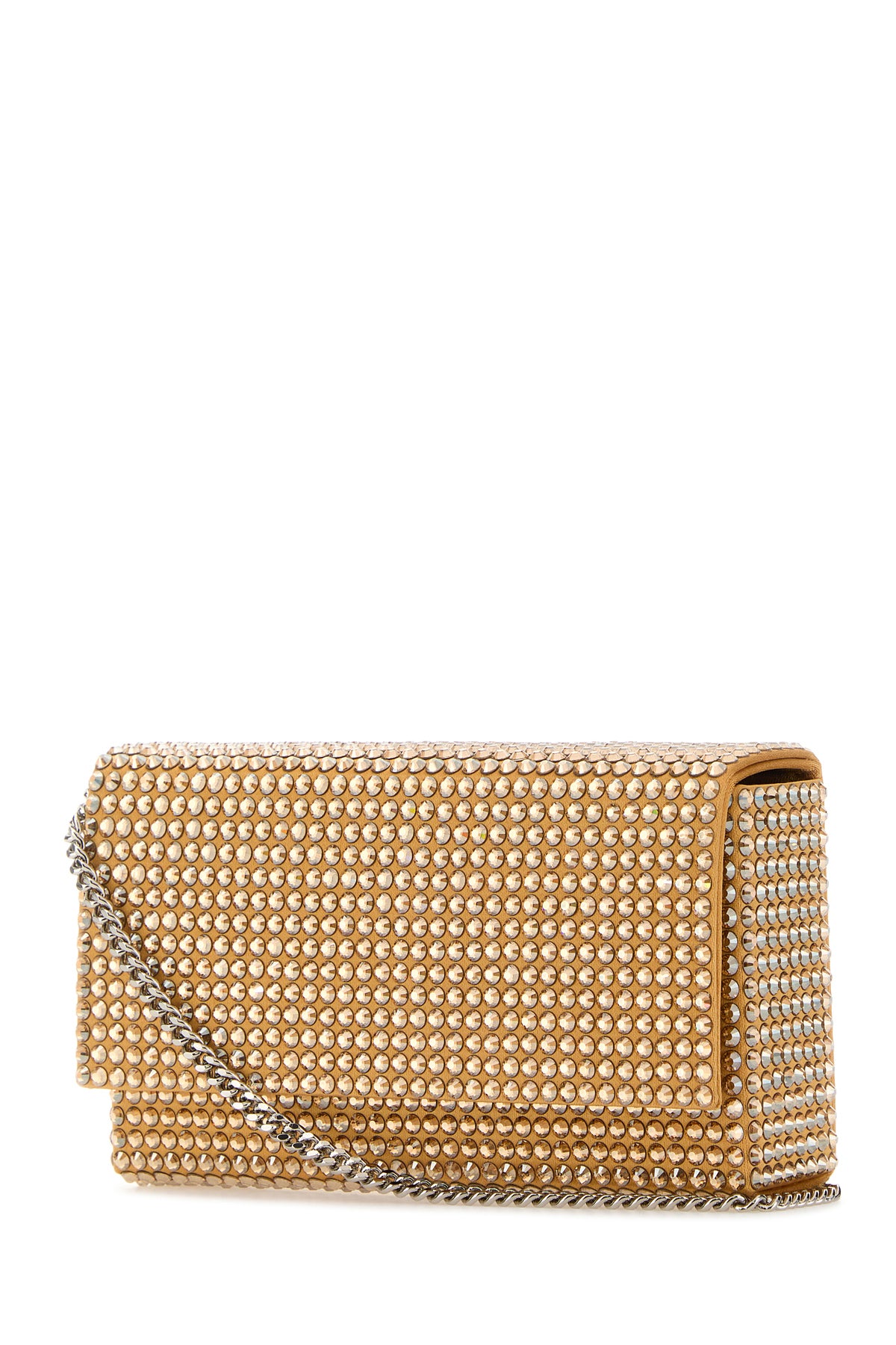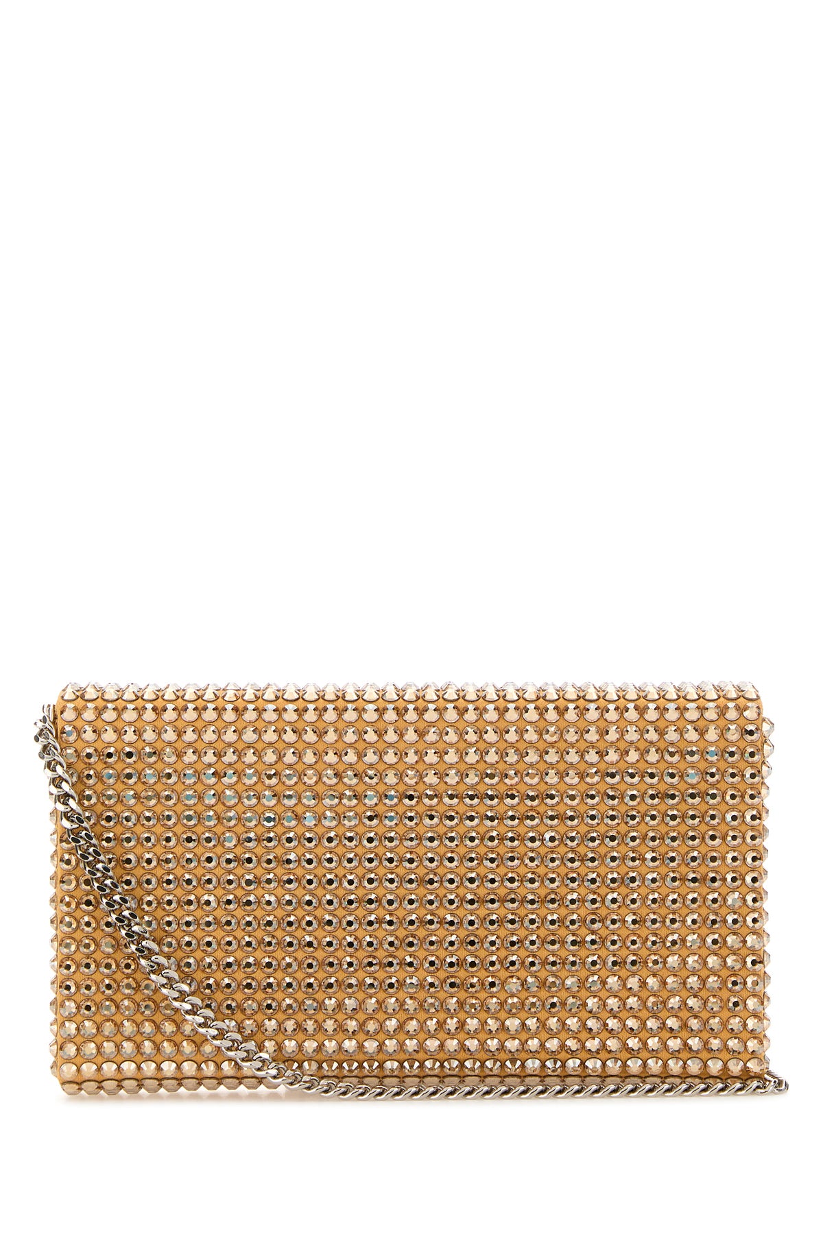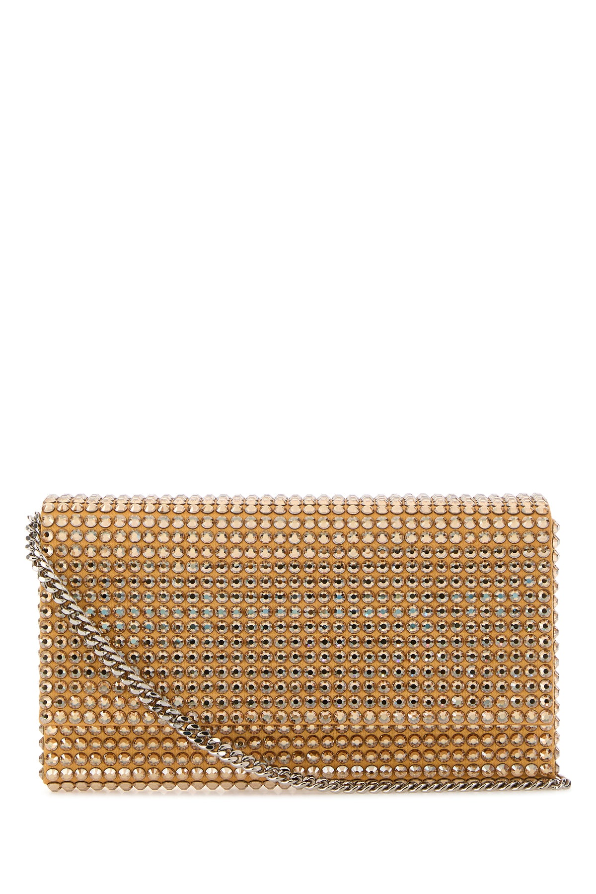 Clutch realized in satin entirely covered by rhinestones.