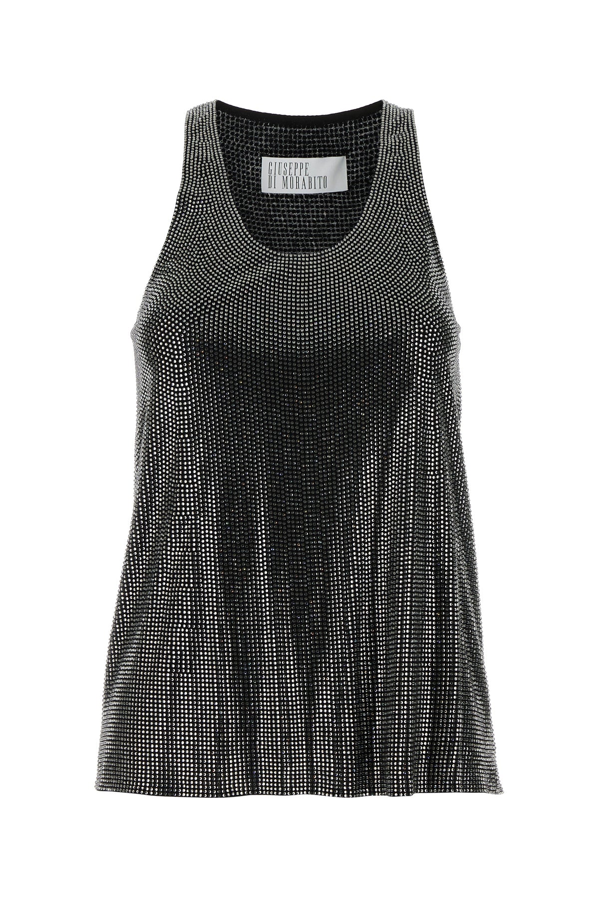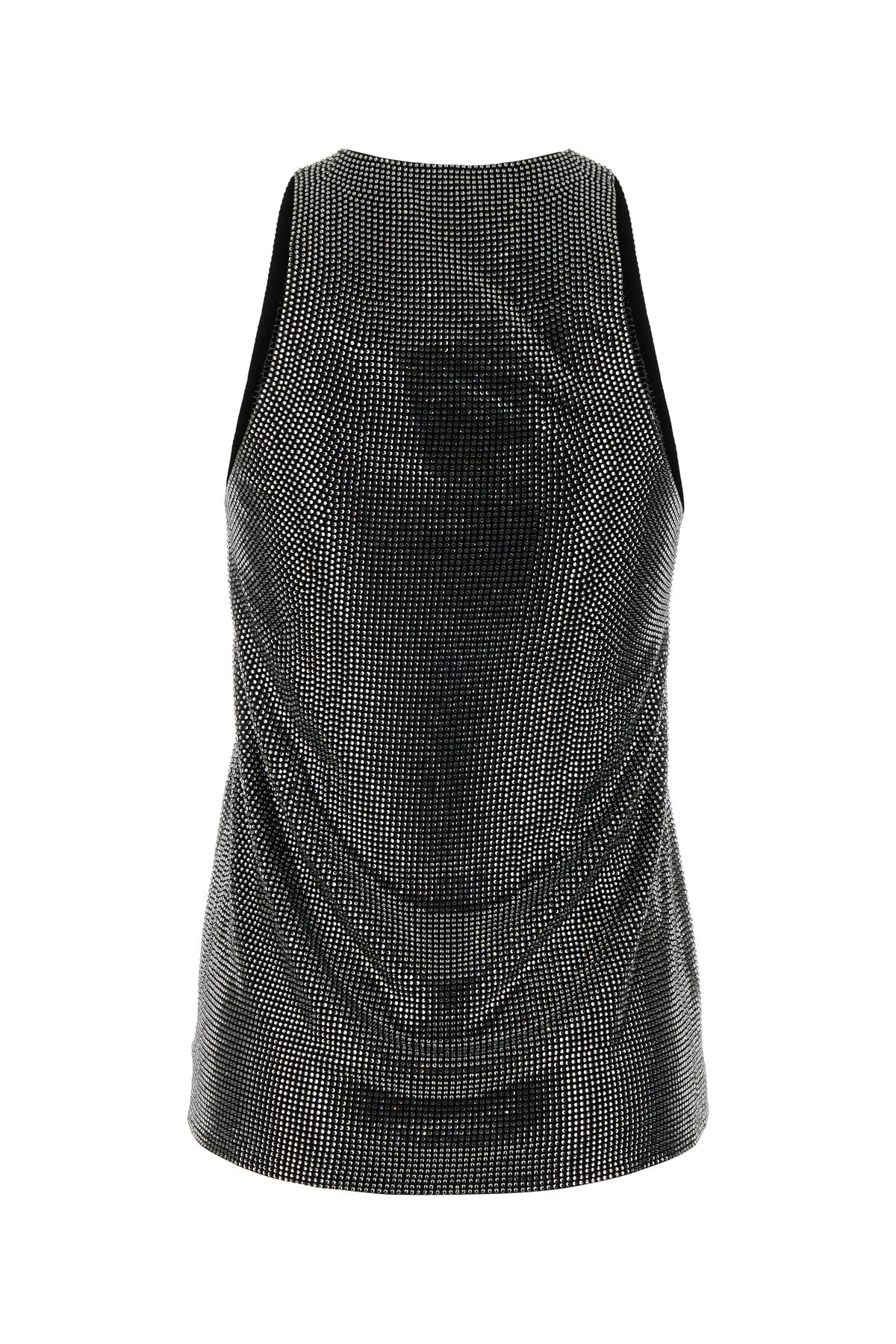 Tank top realized in viscose entirely covered by rhinestones.