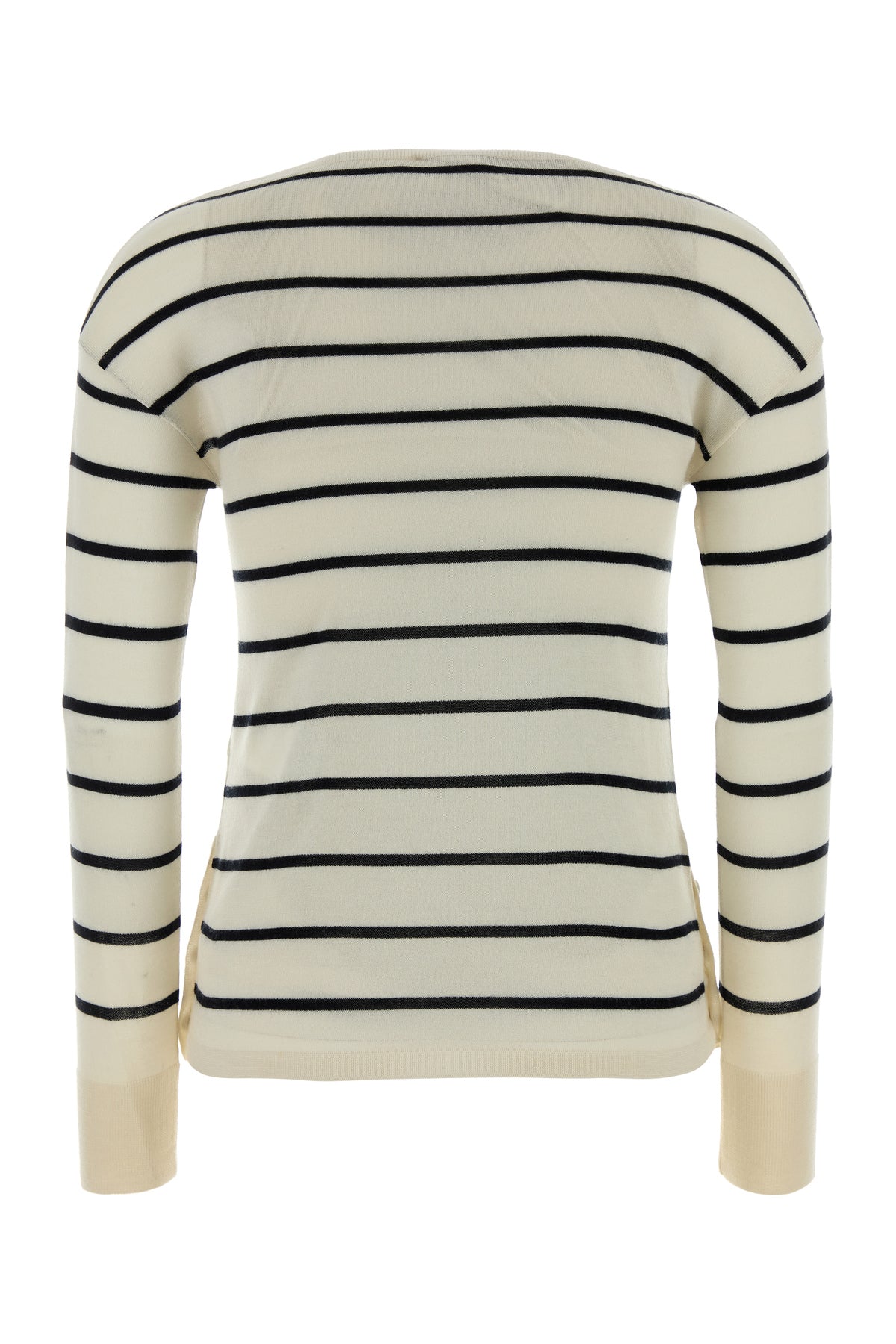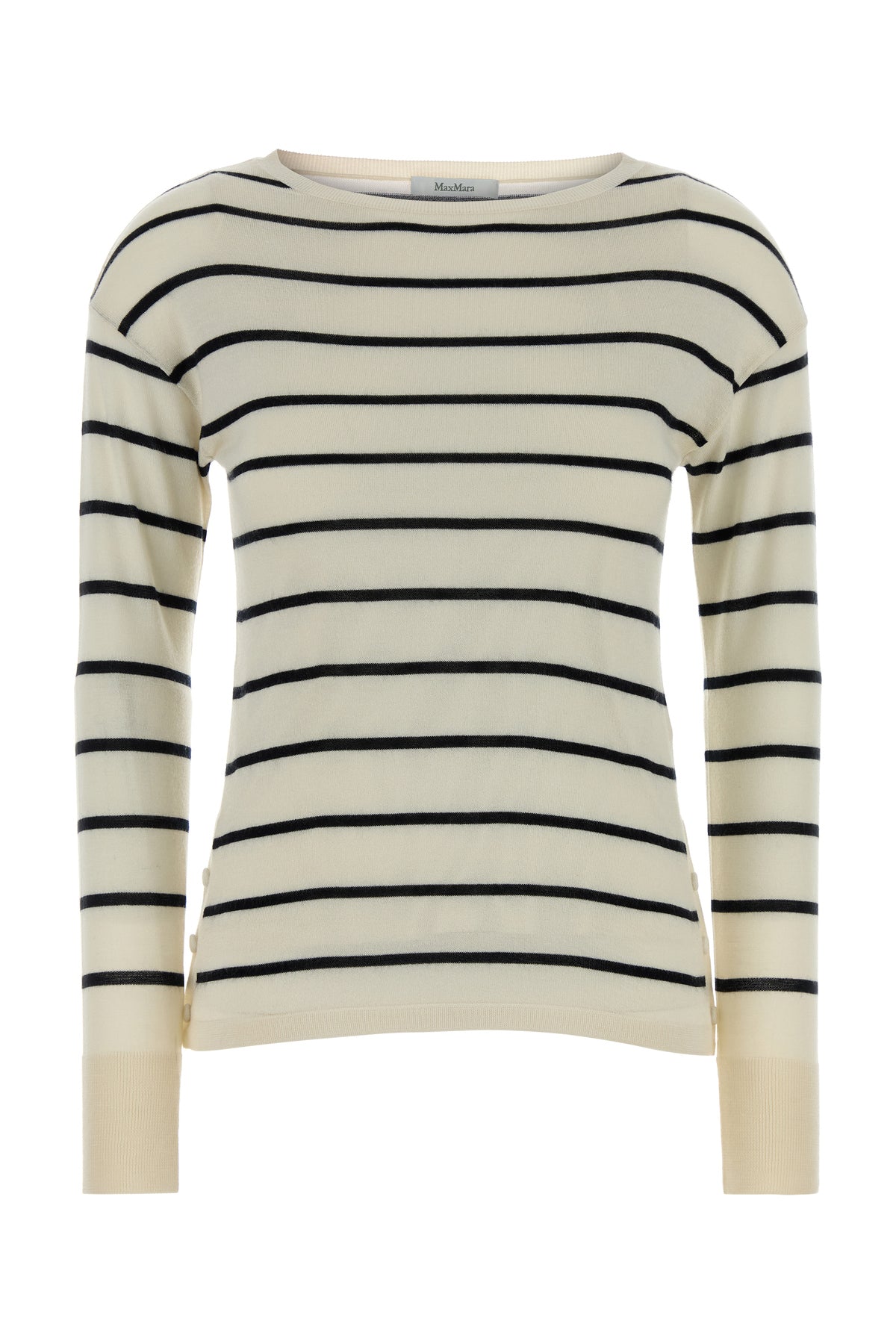 Sweater realized in cashmere and silk characterized by striped embroidery on the entire surface.