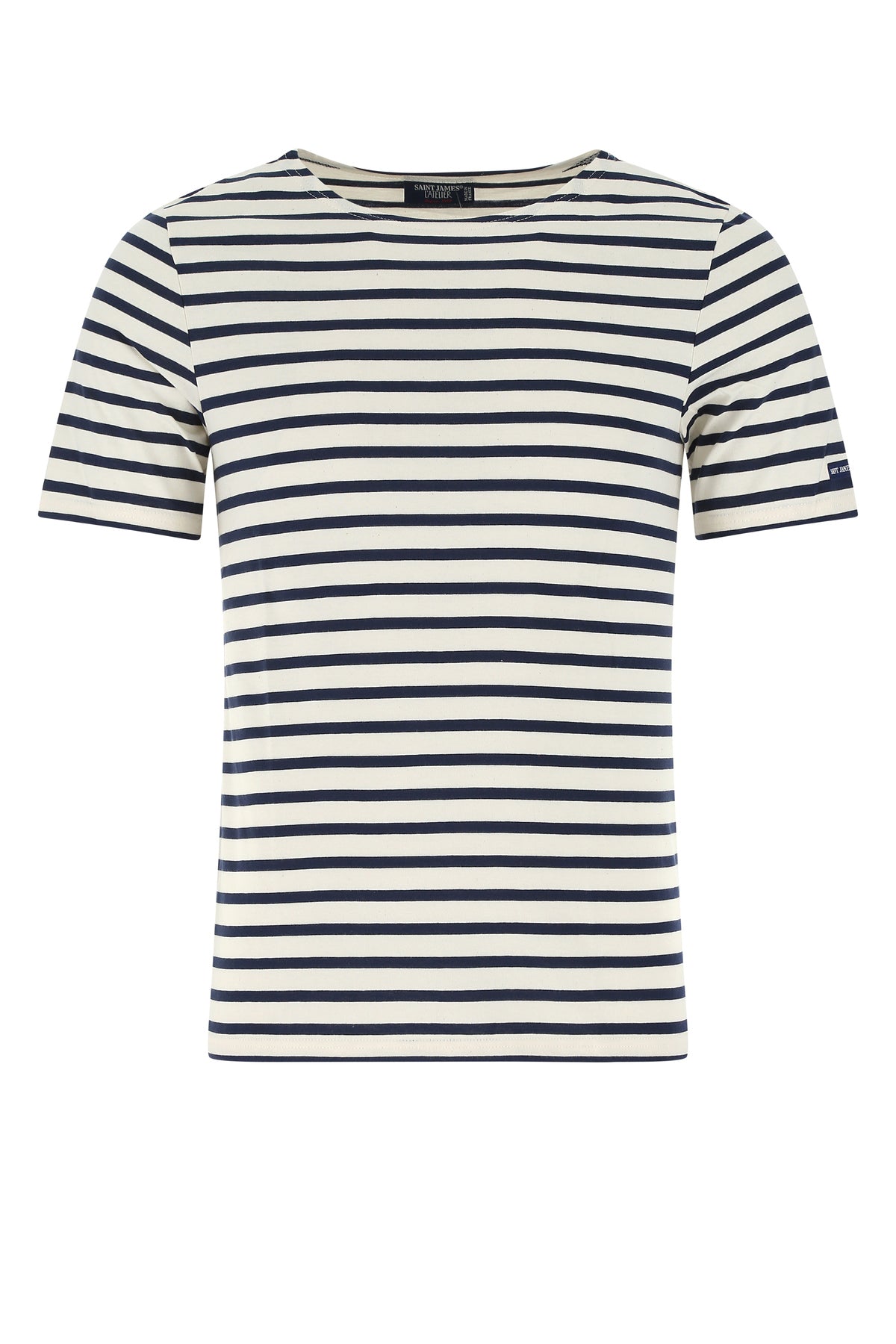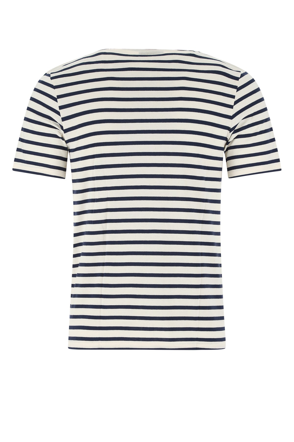 T-shirt realized in pure cotton characterized by striped embroidery on the entire surface enriched by logoed label on the side.