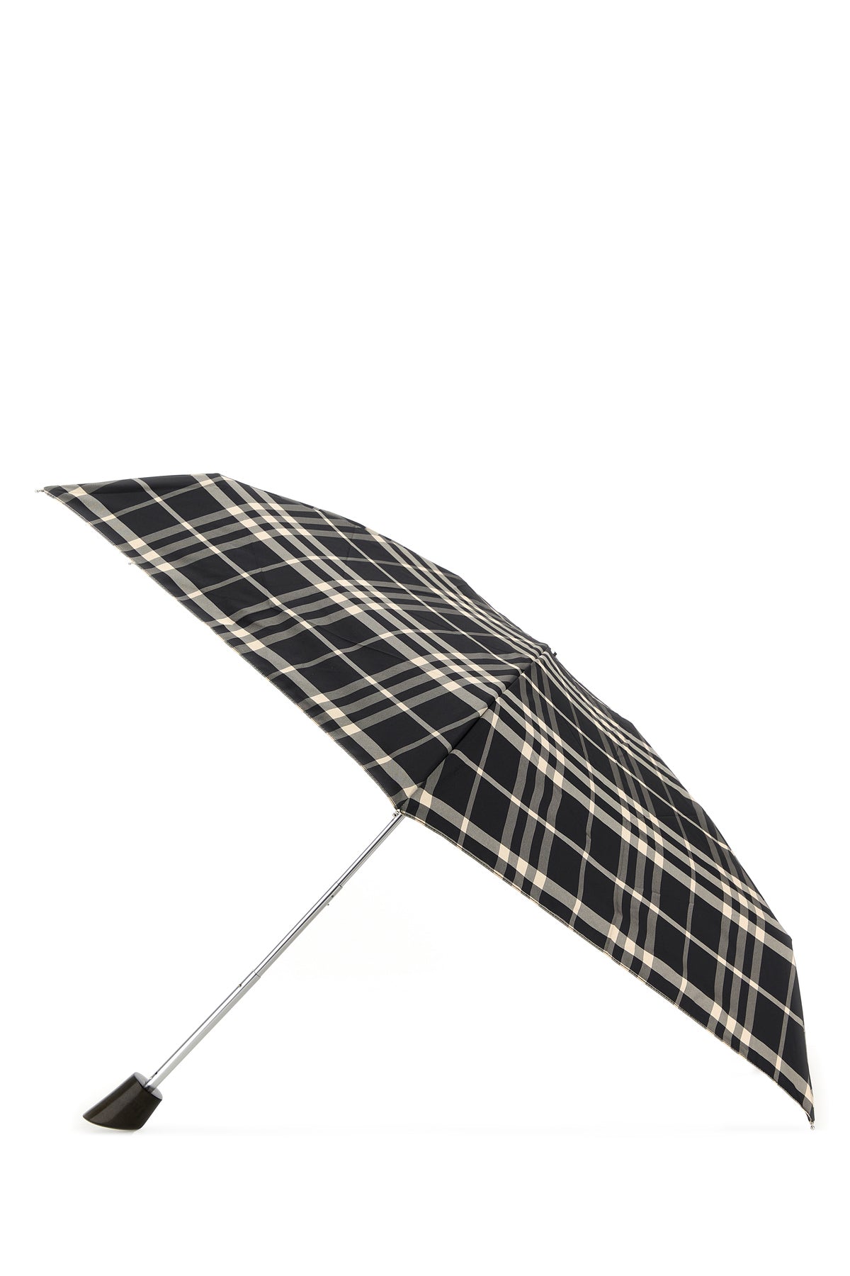 Umbrella realized in polyester characterized by Burberry Check embroidery on the entire surface.