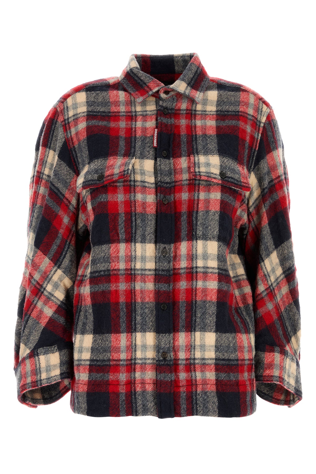 Shirt realized in pure wool flannel characterized by checkered embroidery on the entire surface enriched by logoed label at the front.