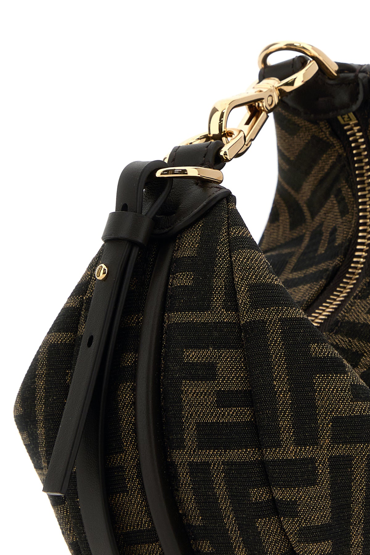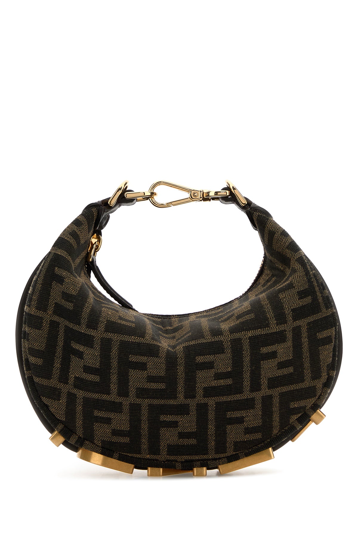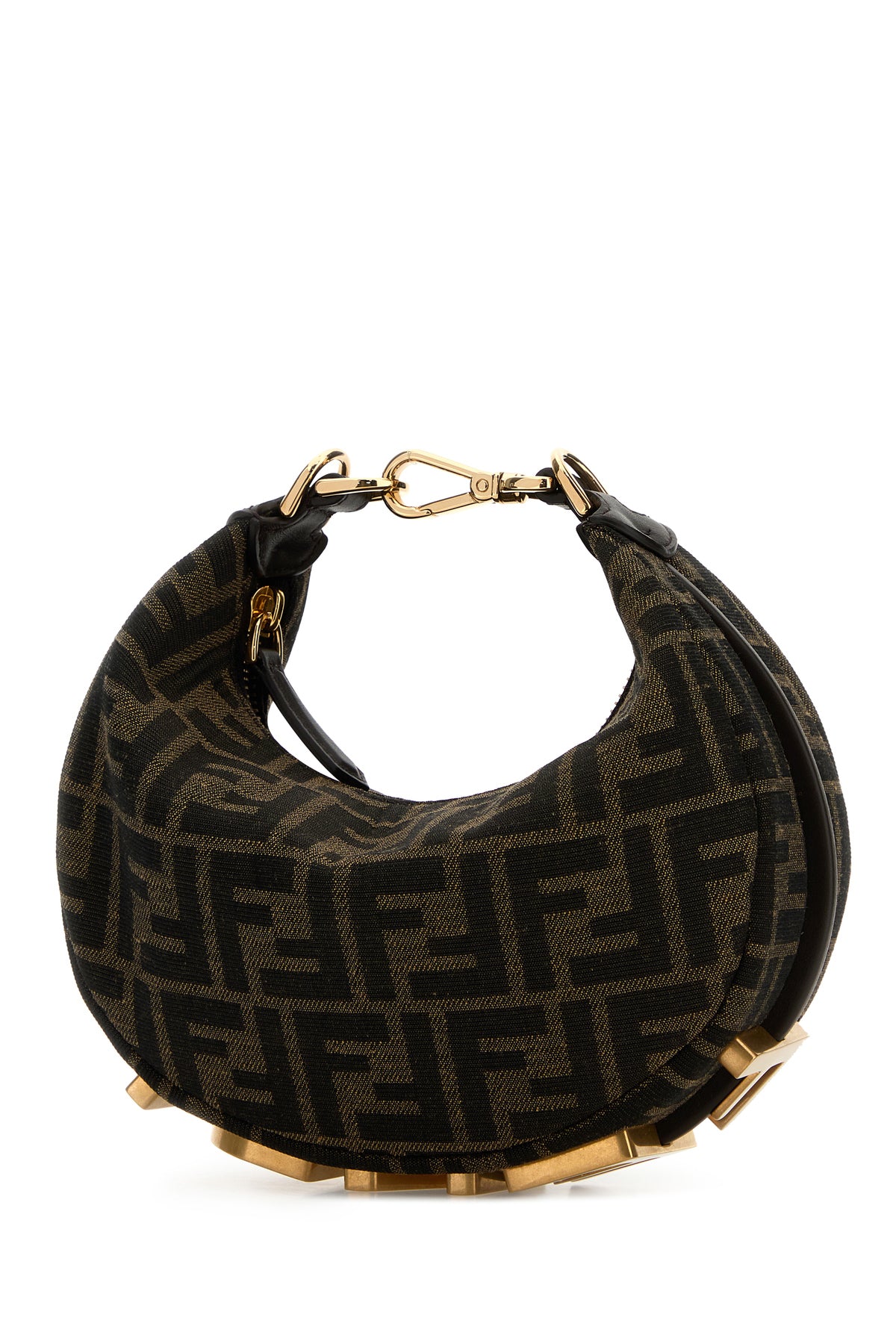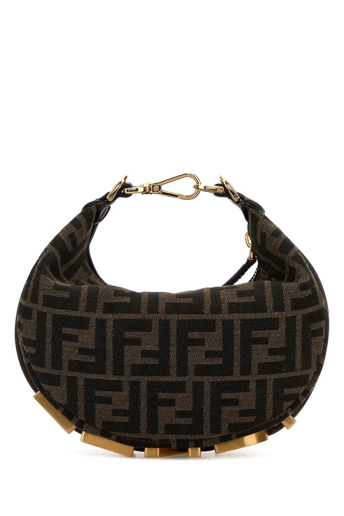 Handbag realized in jacquard characterized by embroidered FF motif on the entire surface enriched by metal lettering logo on the hemline.