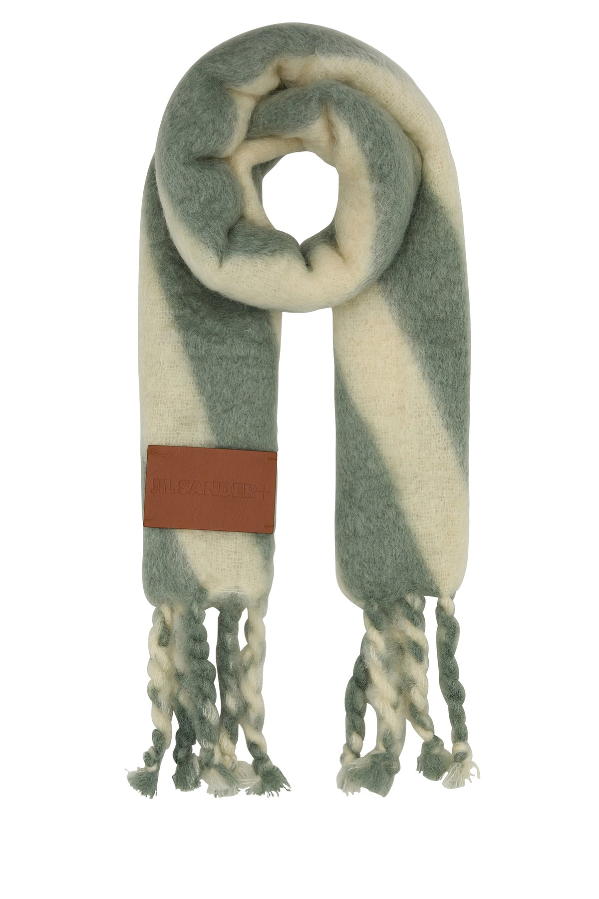 Maxi scarf realized in mohair blend characterized by stripes motif embroidery on the entire surface enriched by logoed label at the front.
