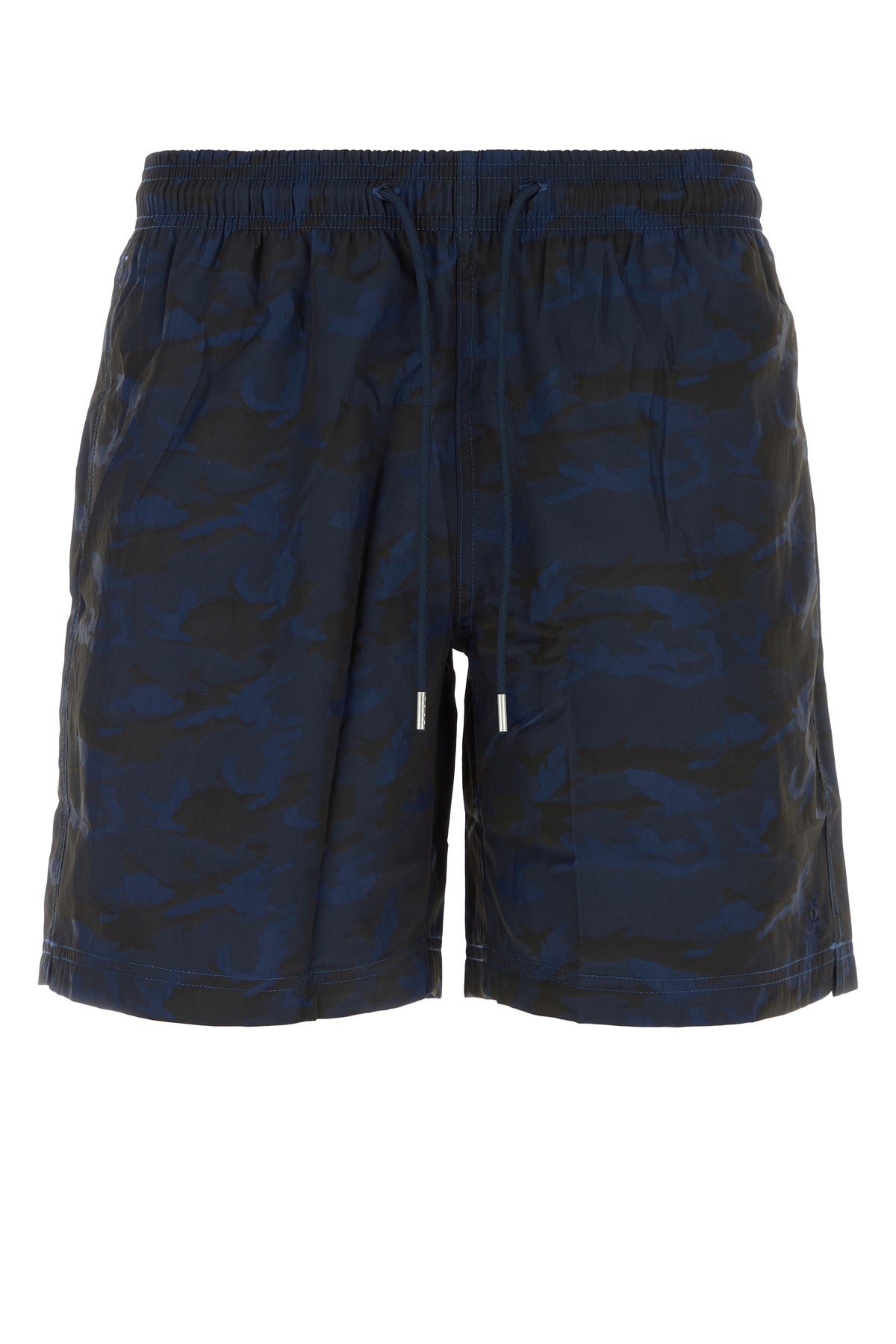 Swimming shorts realized in nylon blend characterized by peculiar embroidery on the entire surface and logoed embroidery on the hemline.
