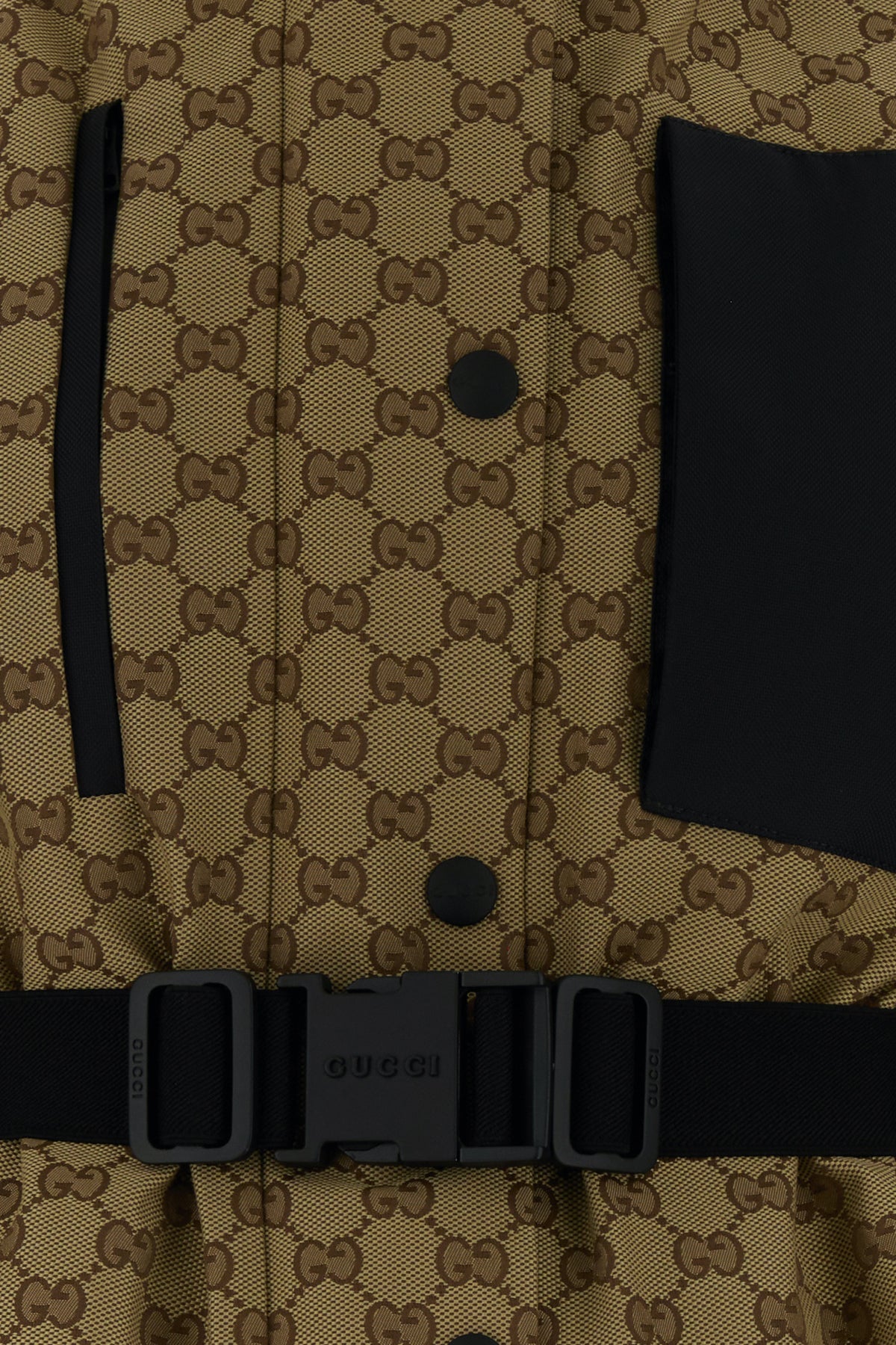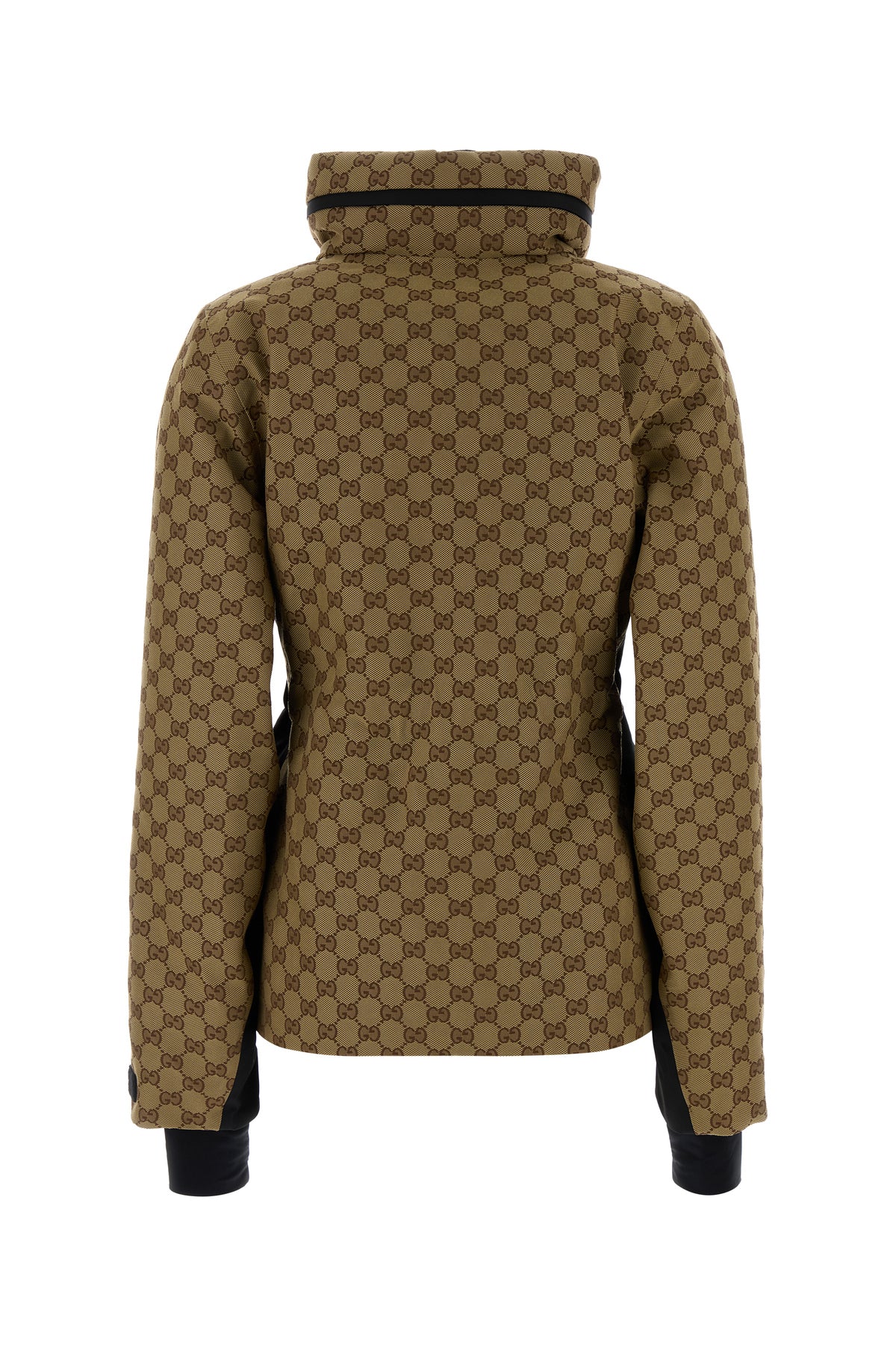 Padded jacket realized in nylon characterized by GG embroidery on the entire surface.