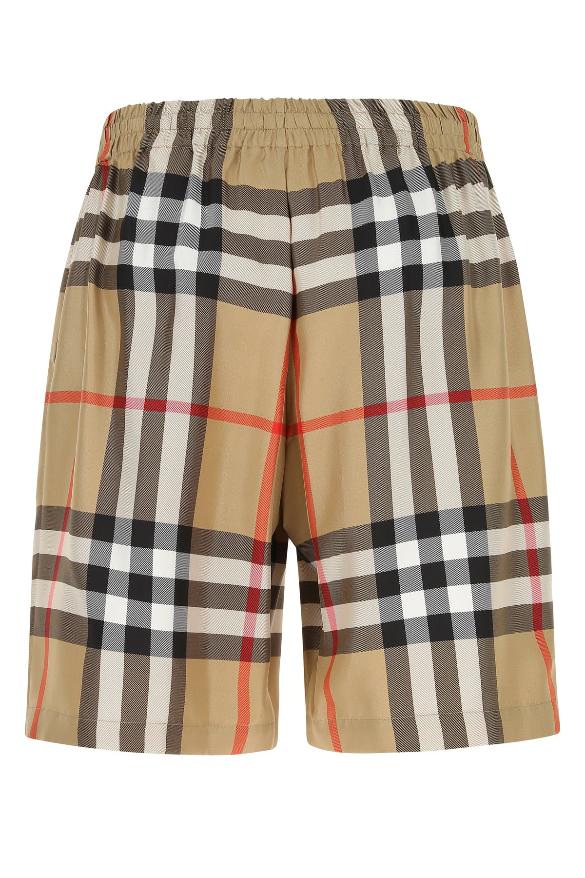 Bermuda shorts realized in pure silk characterized by tartan motif embroidery on the entire surface.