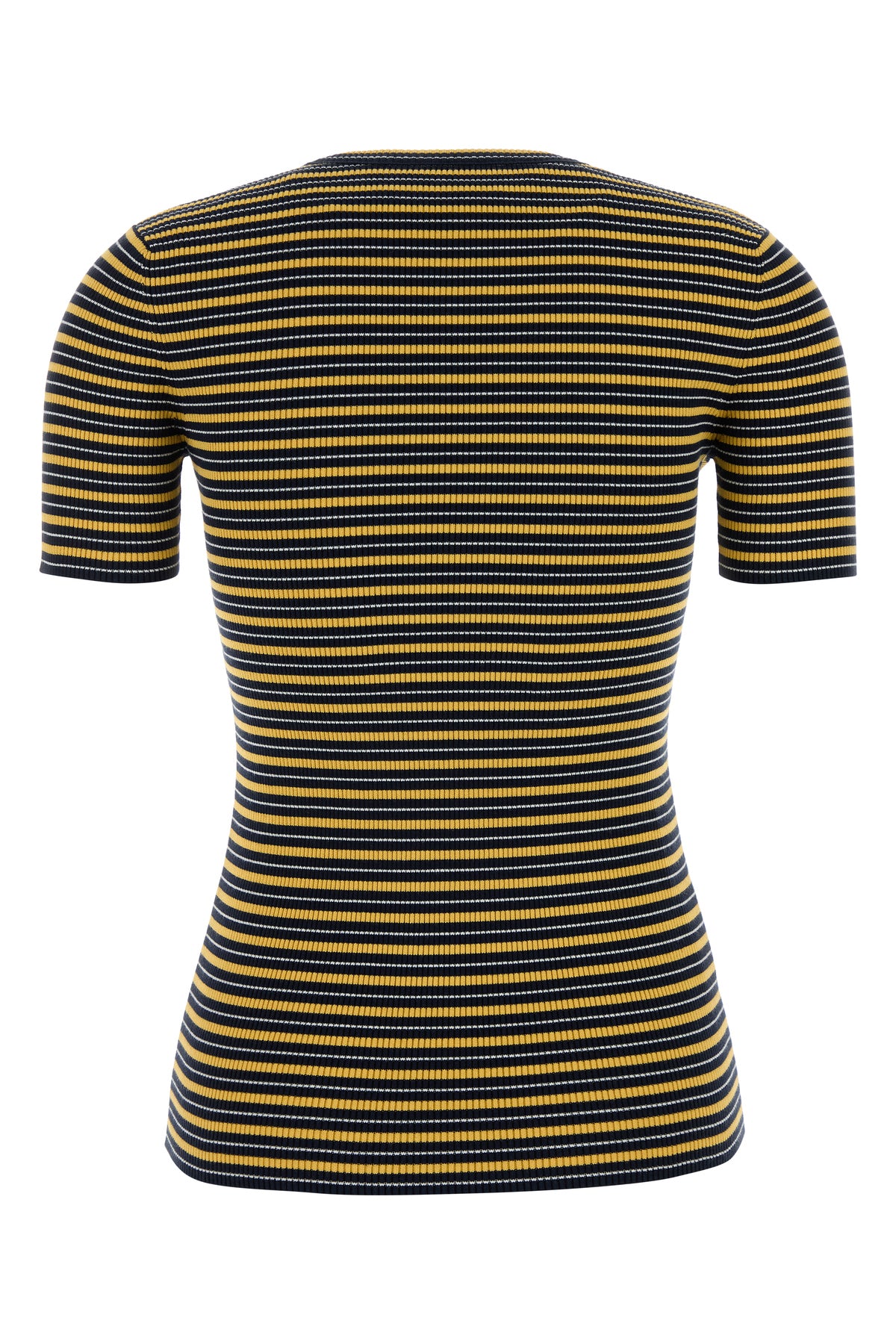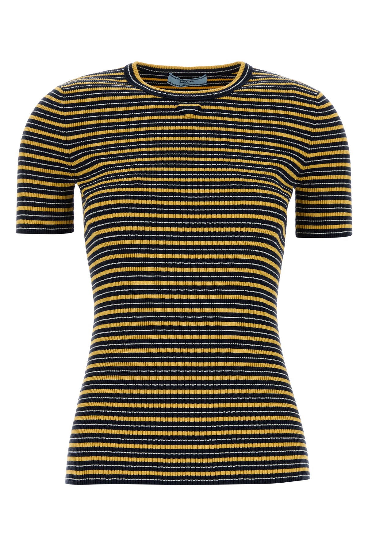 T-shirt realized in stretch cotton blend characterized by striped embroidery on the entire surface enriched by fabric iconic triangle on the chest.