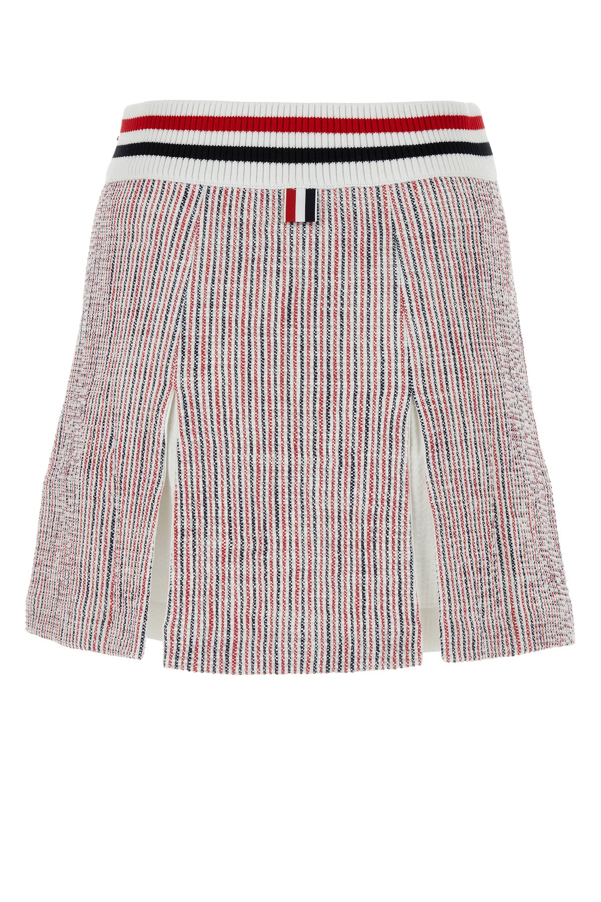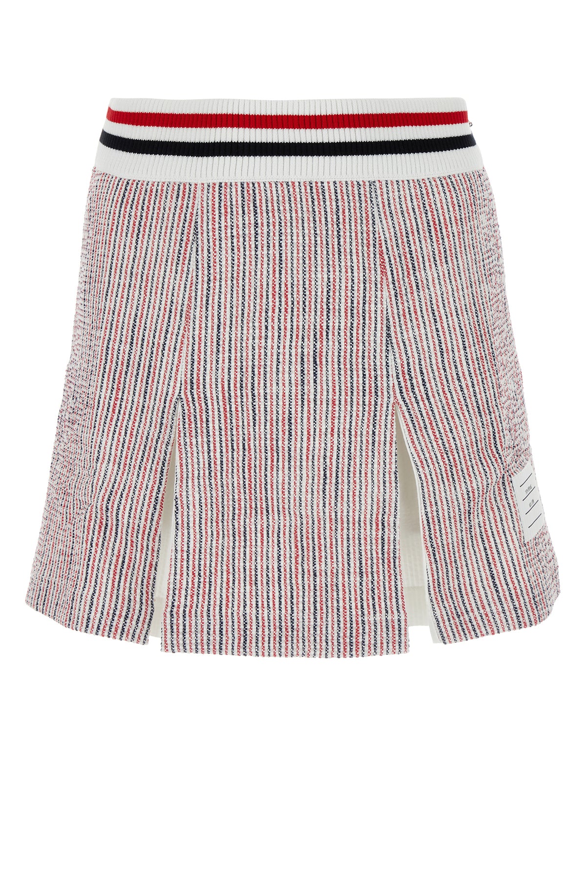 Mini skirt realized in stretch tweed characterized by striped embroidery on the entire surface enriched by logoed label on the hemline and iconic tricolor label at the back.