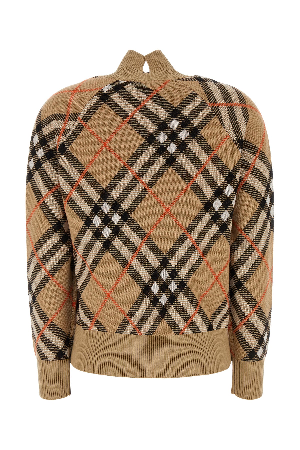 Cardigan realized in stretch wool blend characterized by Burberry Check embroidery on the entire surface.