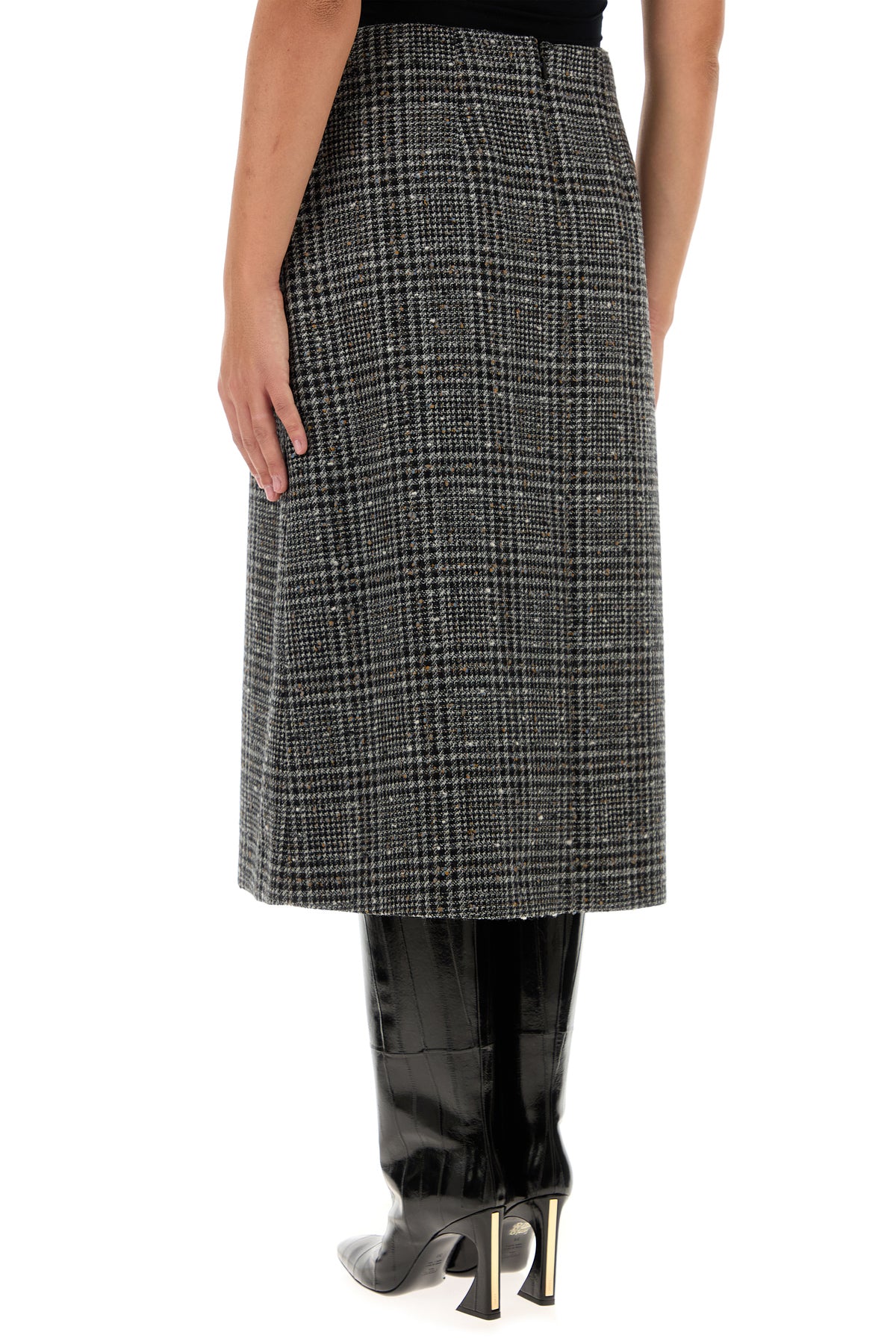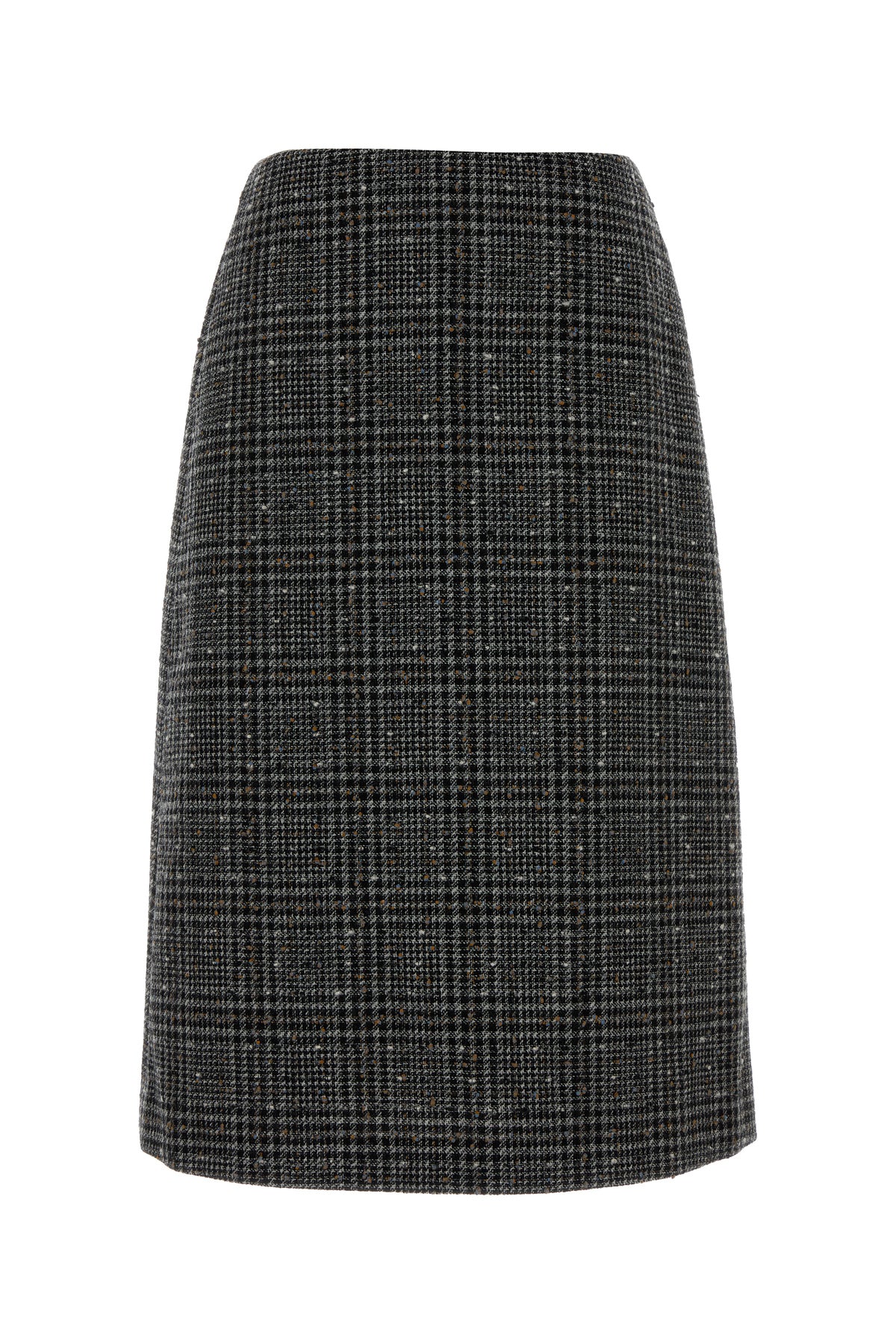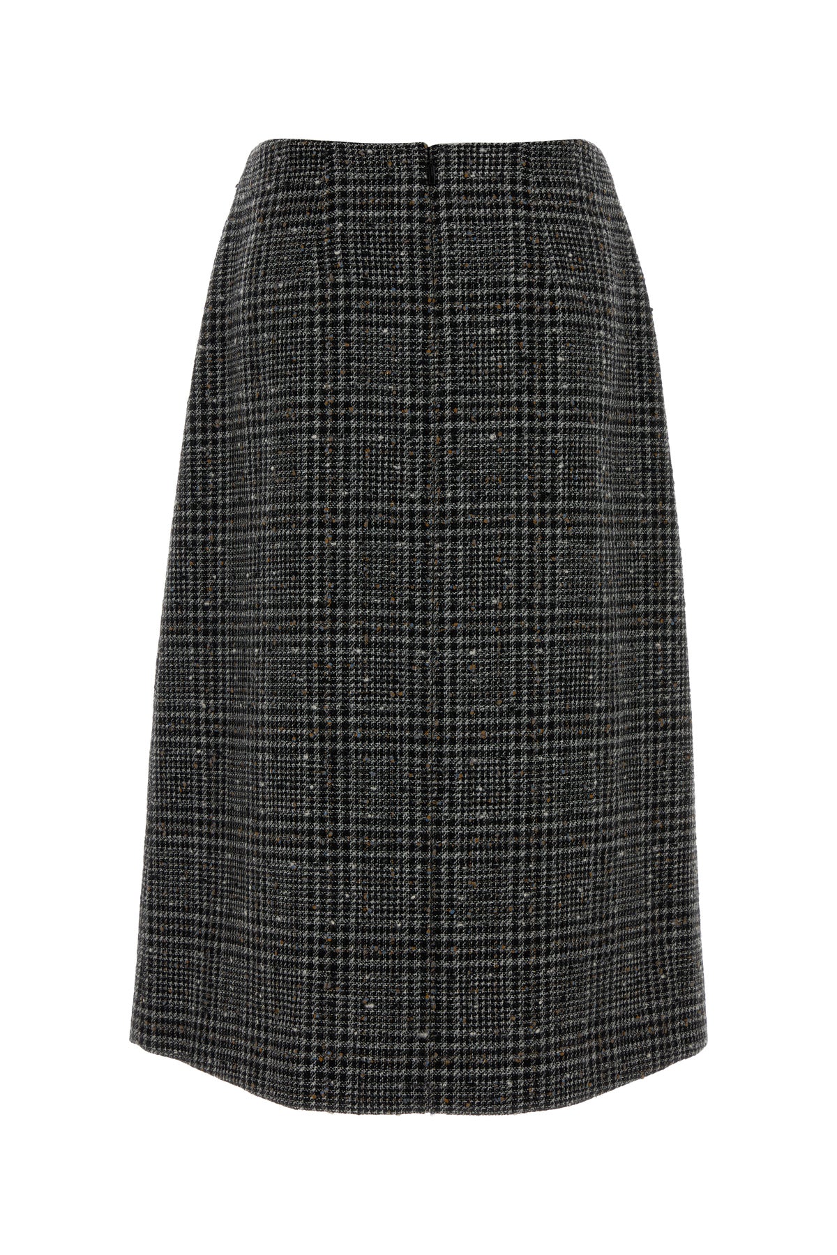 Skirt realized in tweed characterized by checked embroidery on the entire surface.