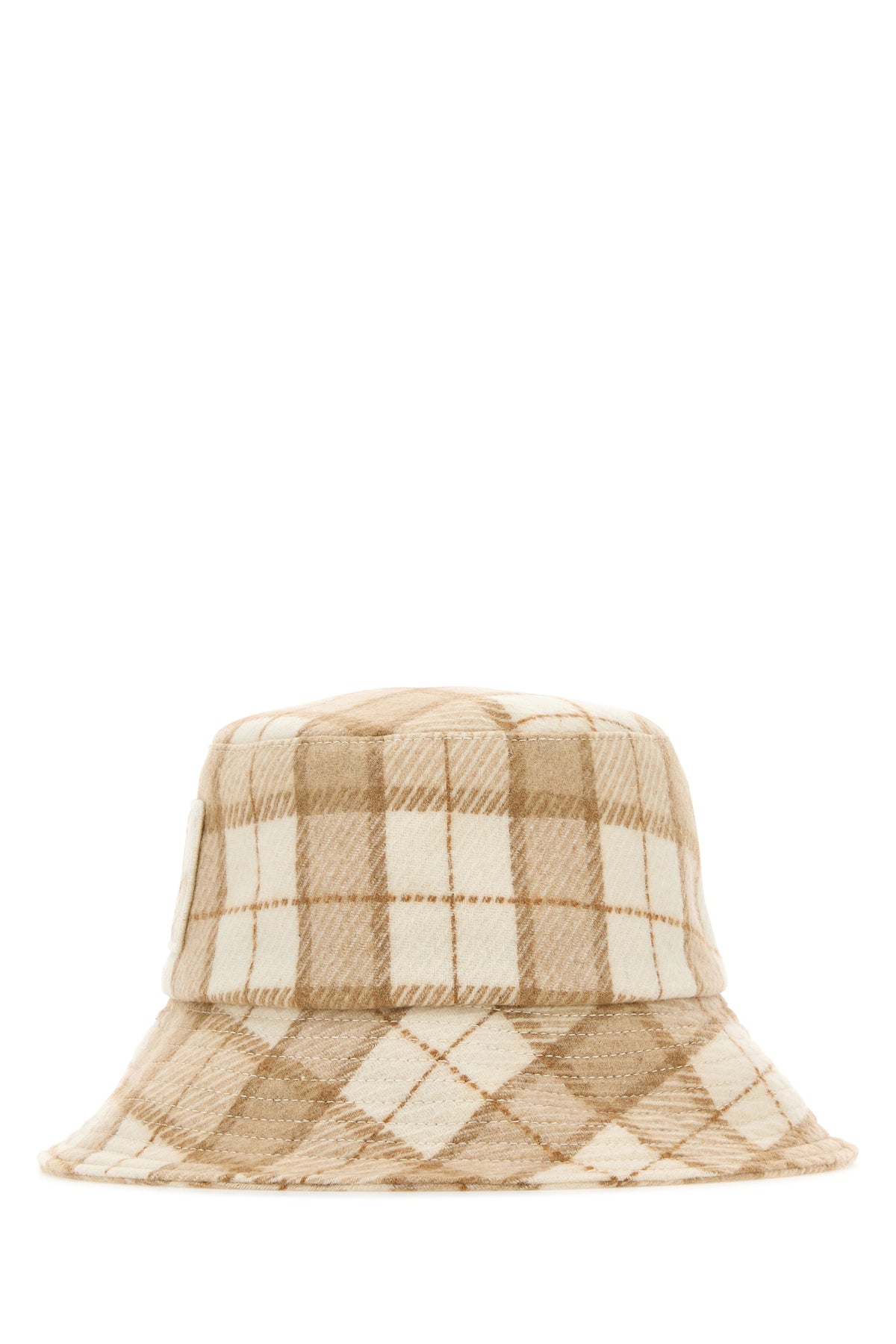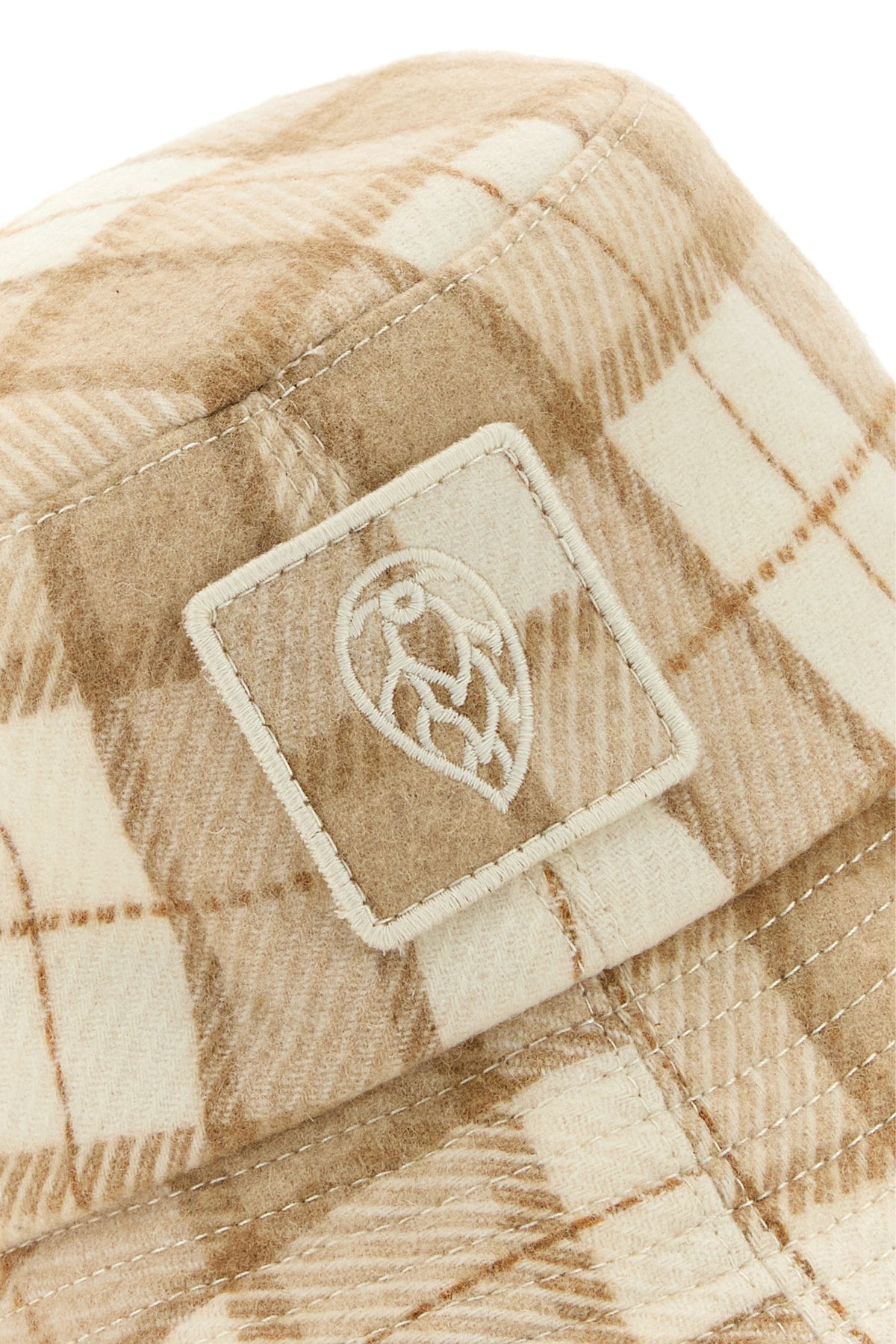 Bucket hat realized in recycled wool blend characterized by checkered embroidery on the entire surface enriched by logoed label at the front.
