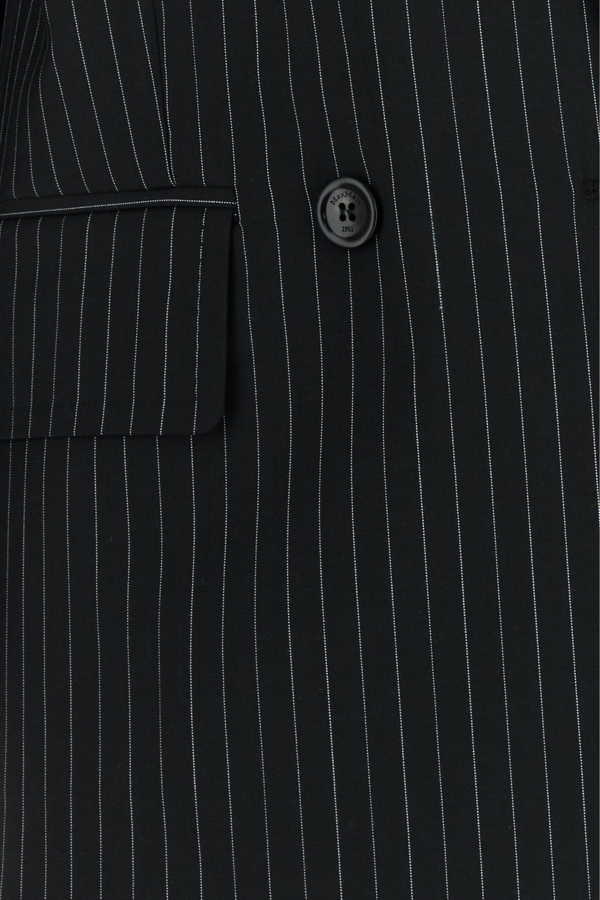 Blazer realized in pure virgin wool characterized by pinstriped motif embroidery on the entire surface.