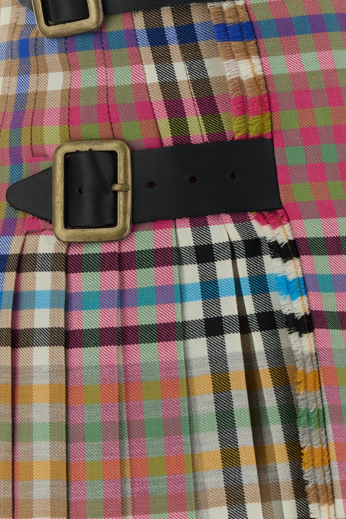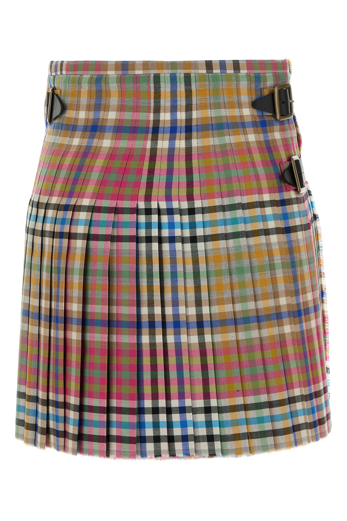 Pleated mini skirt realized in pure virgin wool characterized by check embroidery on the entire surface.