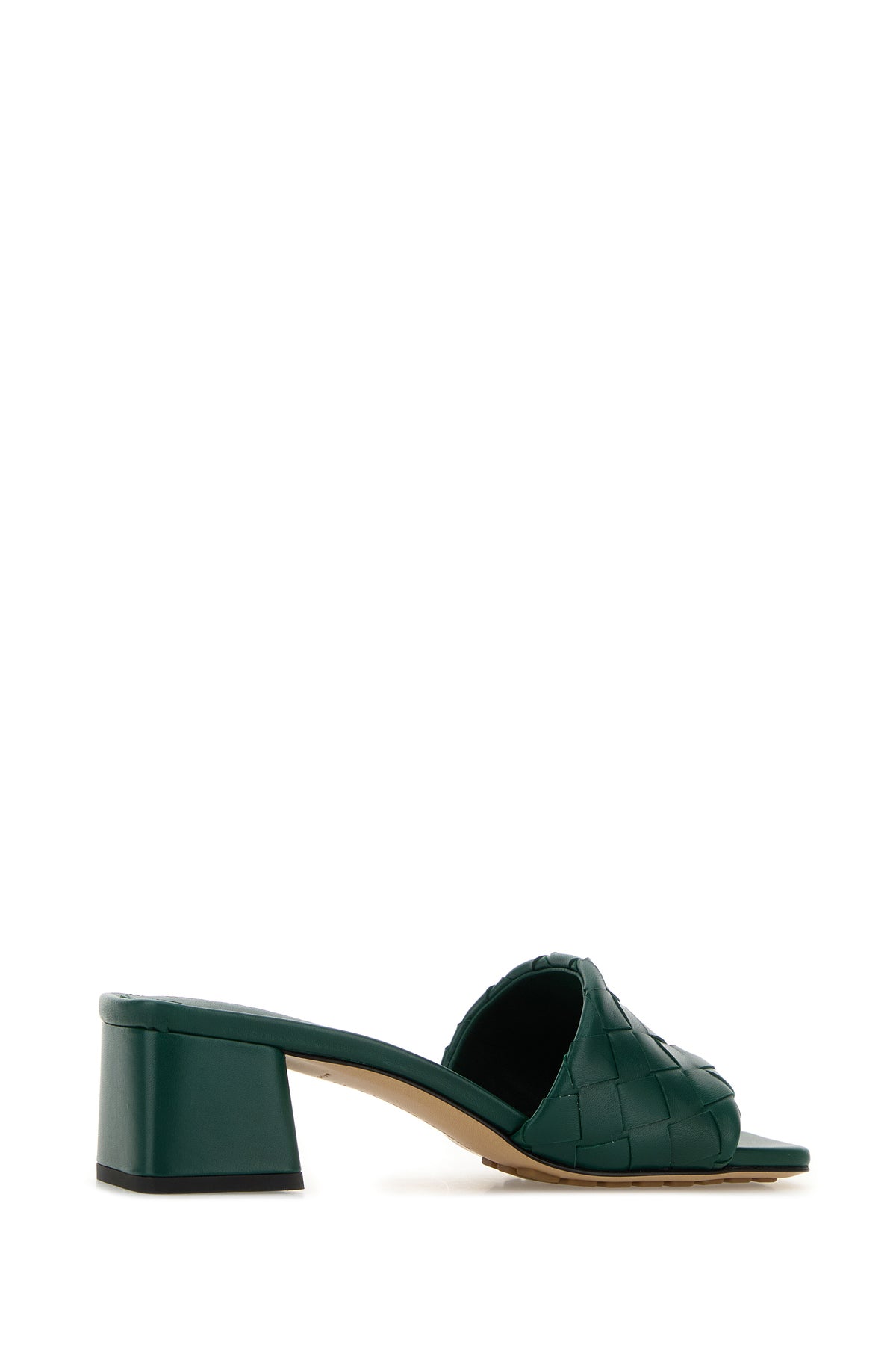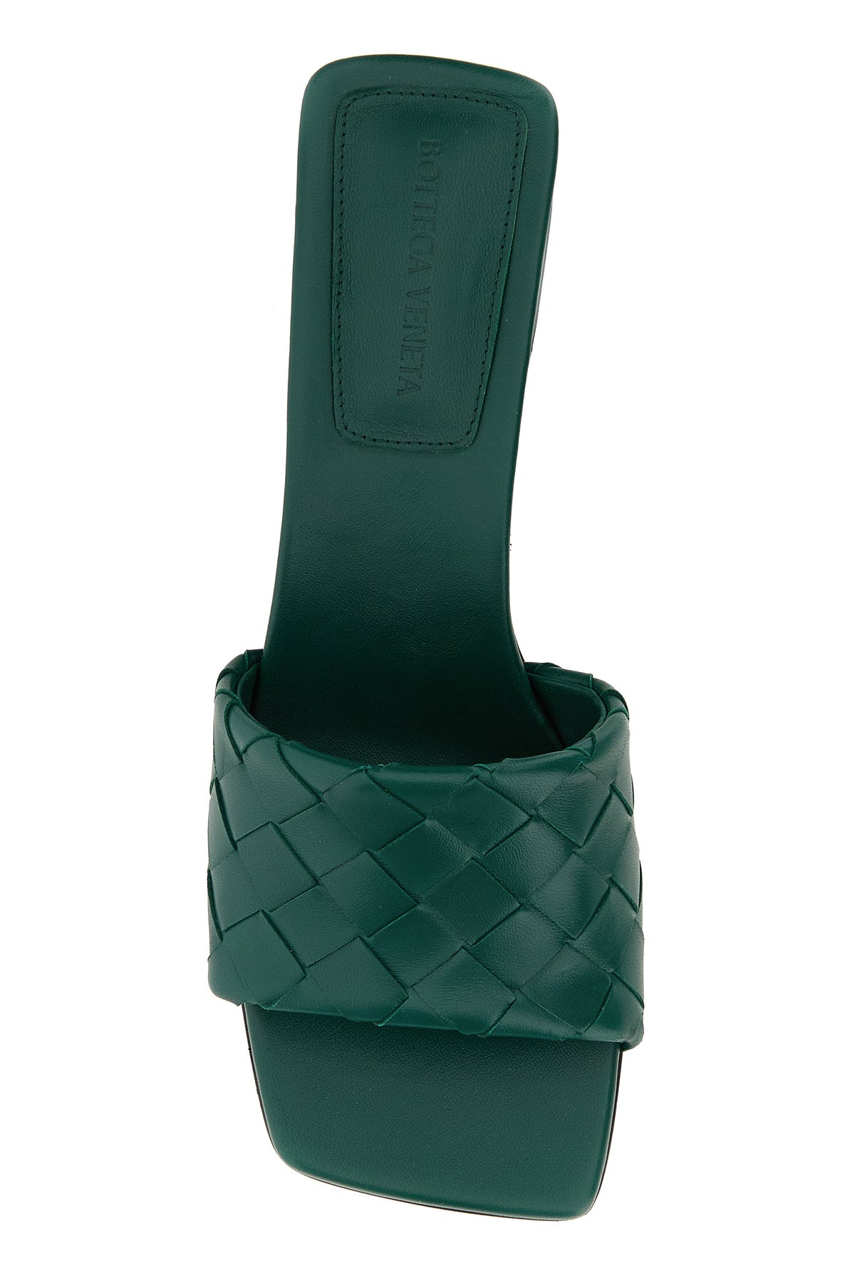 Mules realized in leather characterized by iconic Intrecciato motif on the instep.