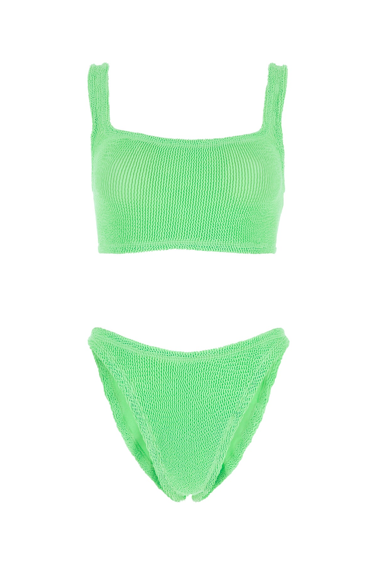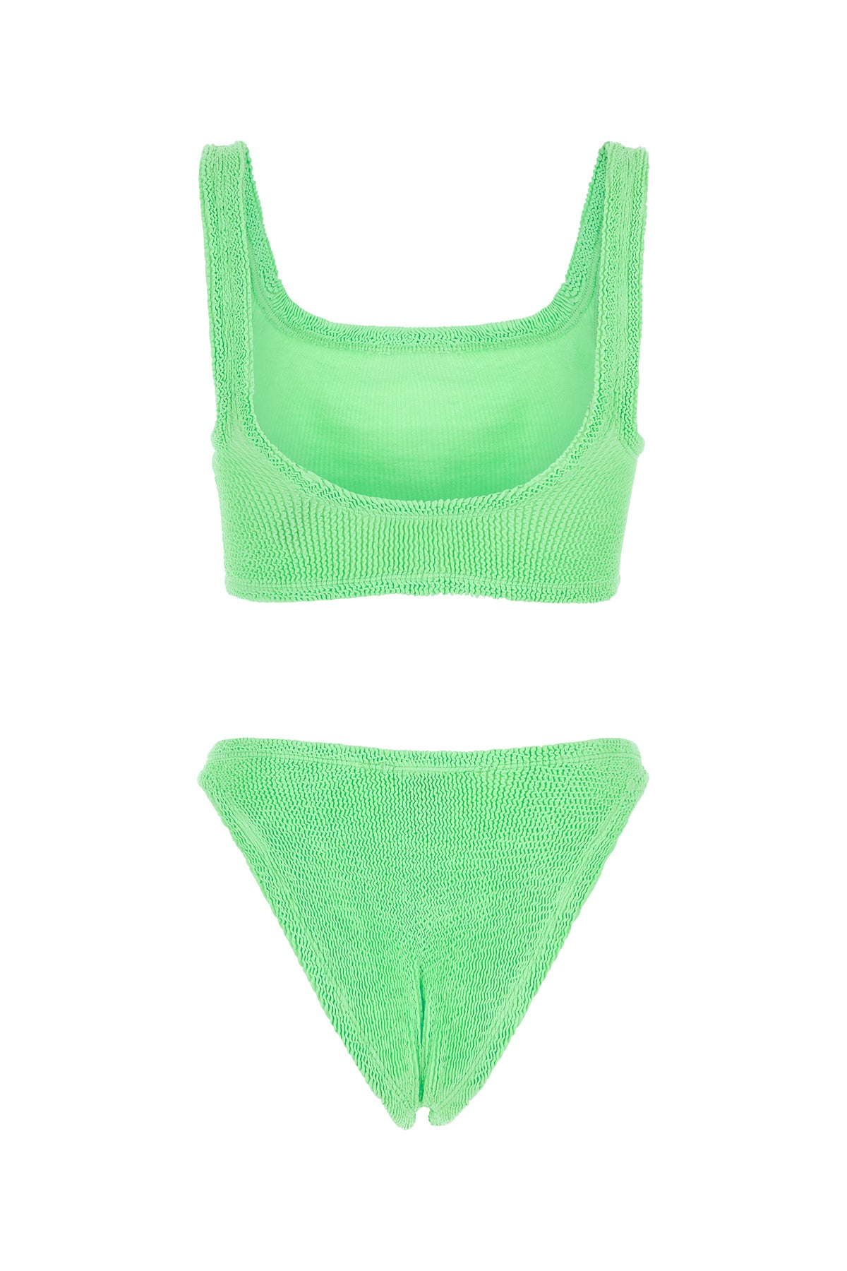 Bikini realized in embossed stretch nylon characterized by bandeau bikini top.