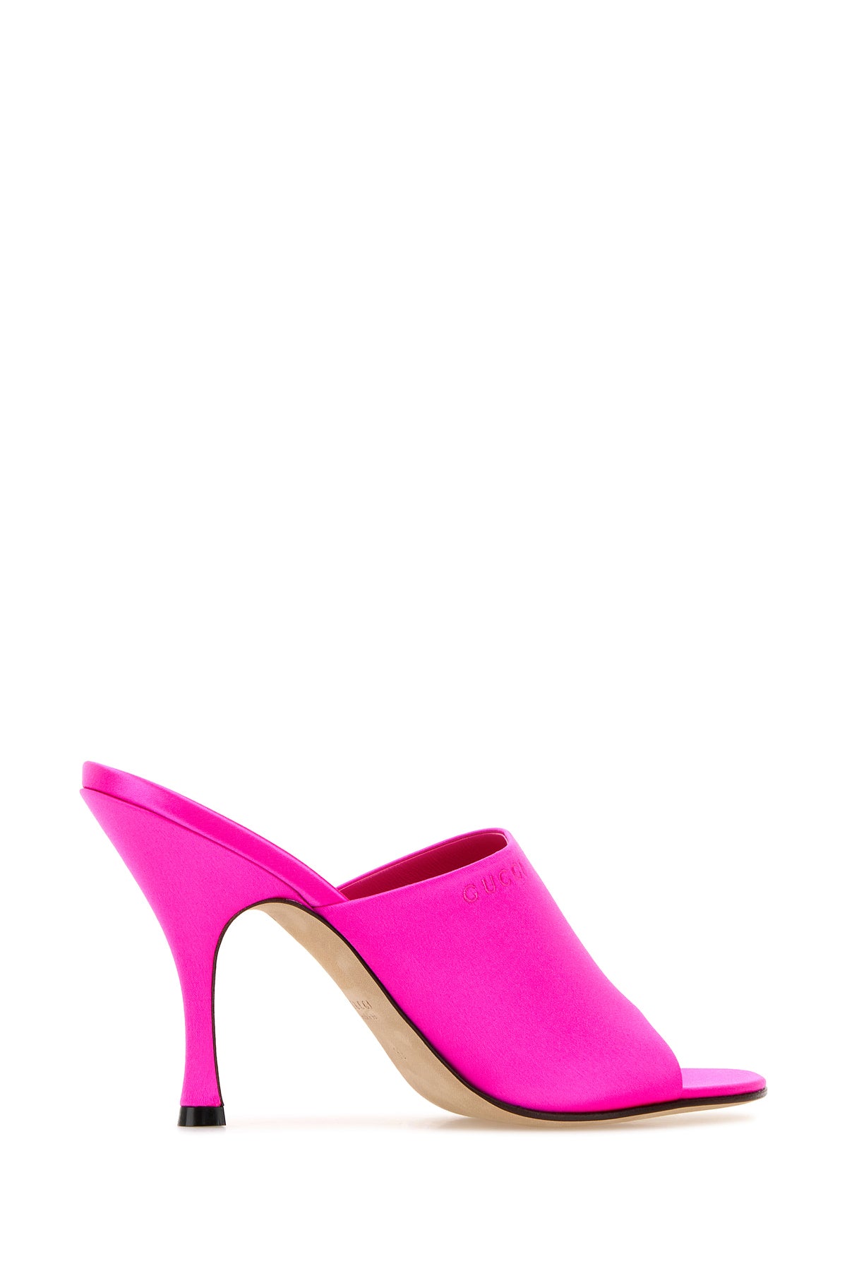 Mules realized in satin characterized by tonal embroidered logo on the side.