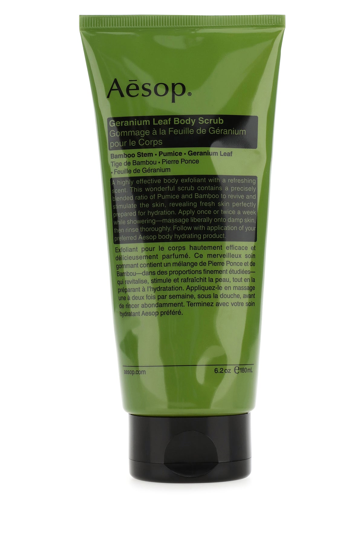 Body scrub characterized by aluminum tube with contrasting printed logo at the front.